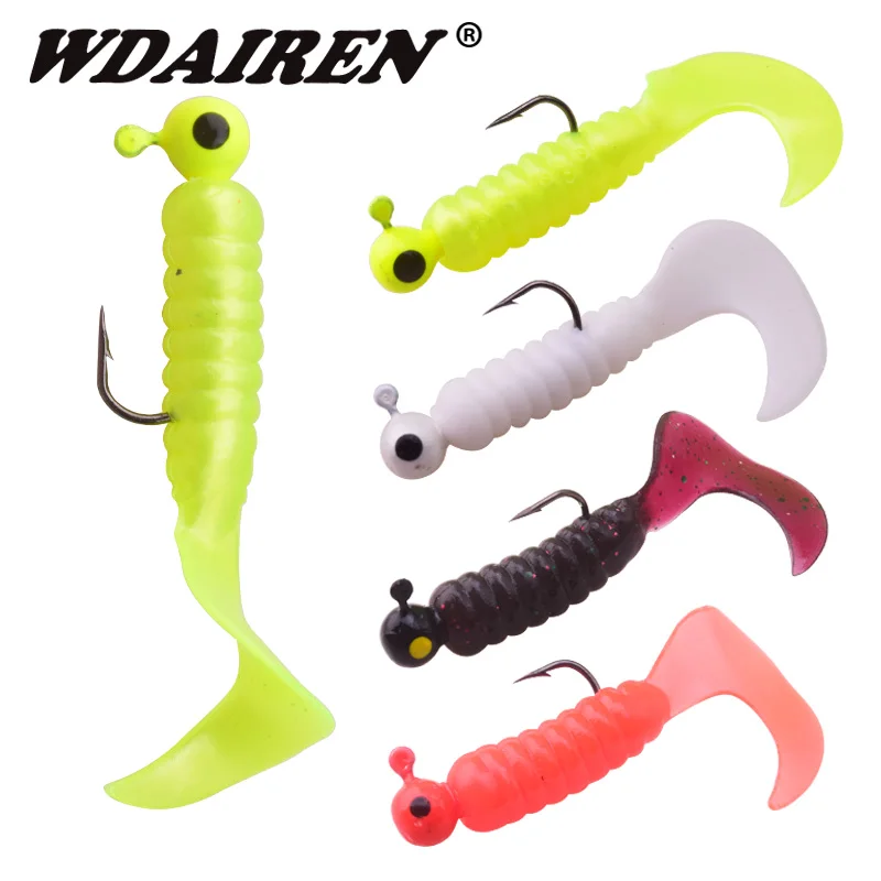 Anzuelo de gusano de silicona, cebo blando de 5cm y 3,2g con anzuelo de plantilla, atractivo para Lucio, carpa, aparejos de pesca artificiales, 7 unids/lote