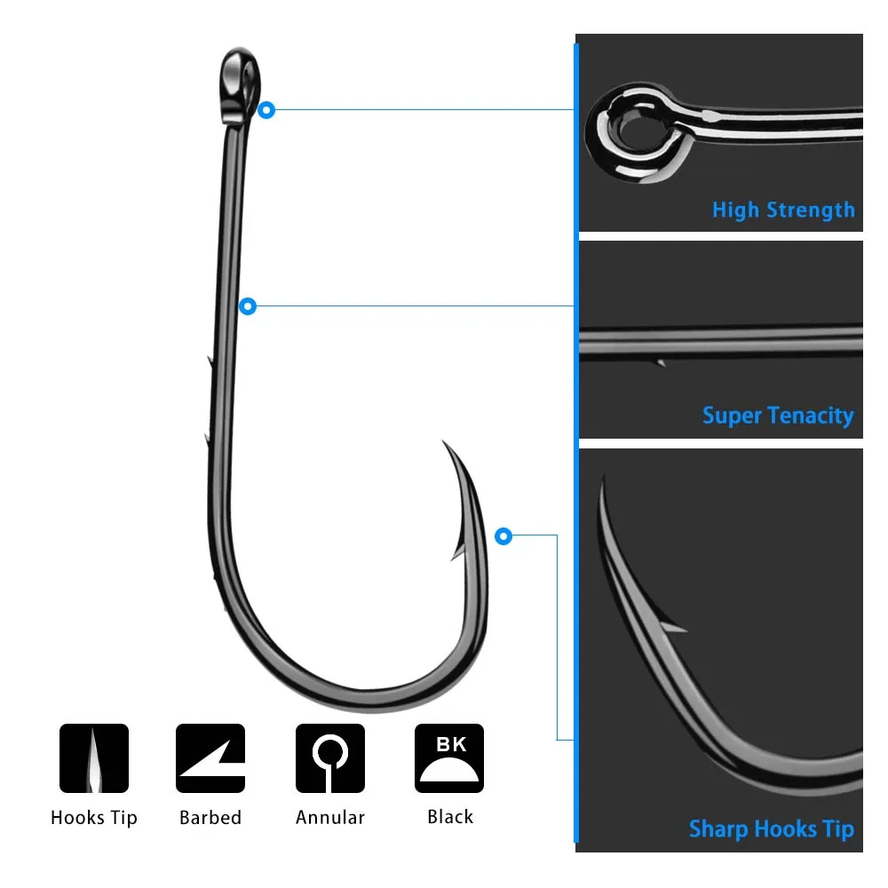 Anzuelo individual de acero al carbono con 3 púas, anzuelos de Pesca de mar grandes para Jigbait, señuelo de Pesca, 100 unidades, 3-6 #1/0 #2/0 #3/0 #