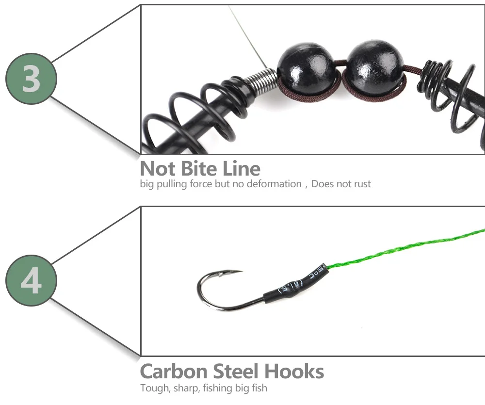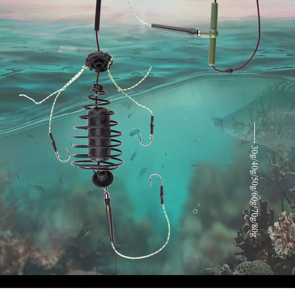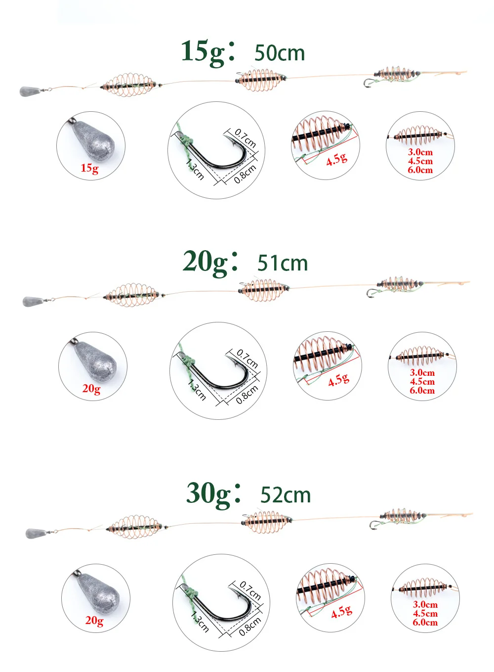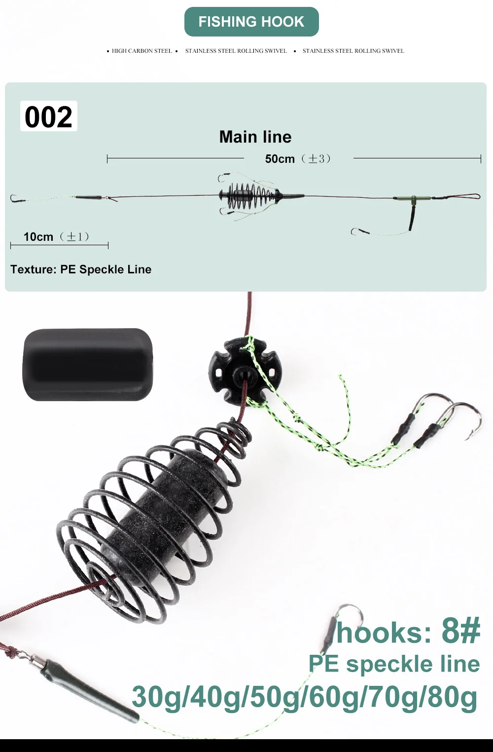 2025 NEW FEEDER Line Group European Carp Line Group Spring Bait Cage PE Line Set Rubber Coated Barbed String Hook Multi-Hooks Fishing Set