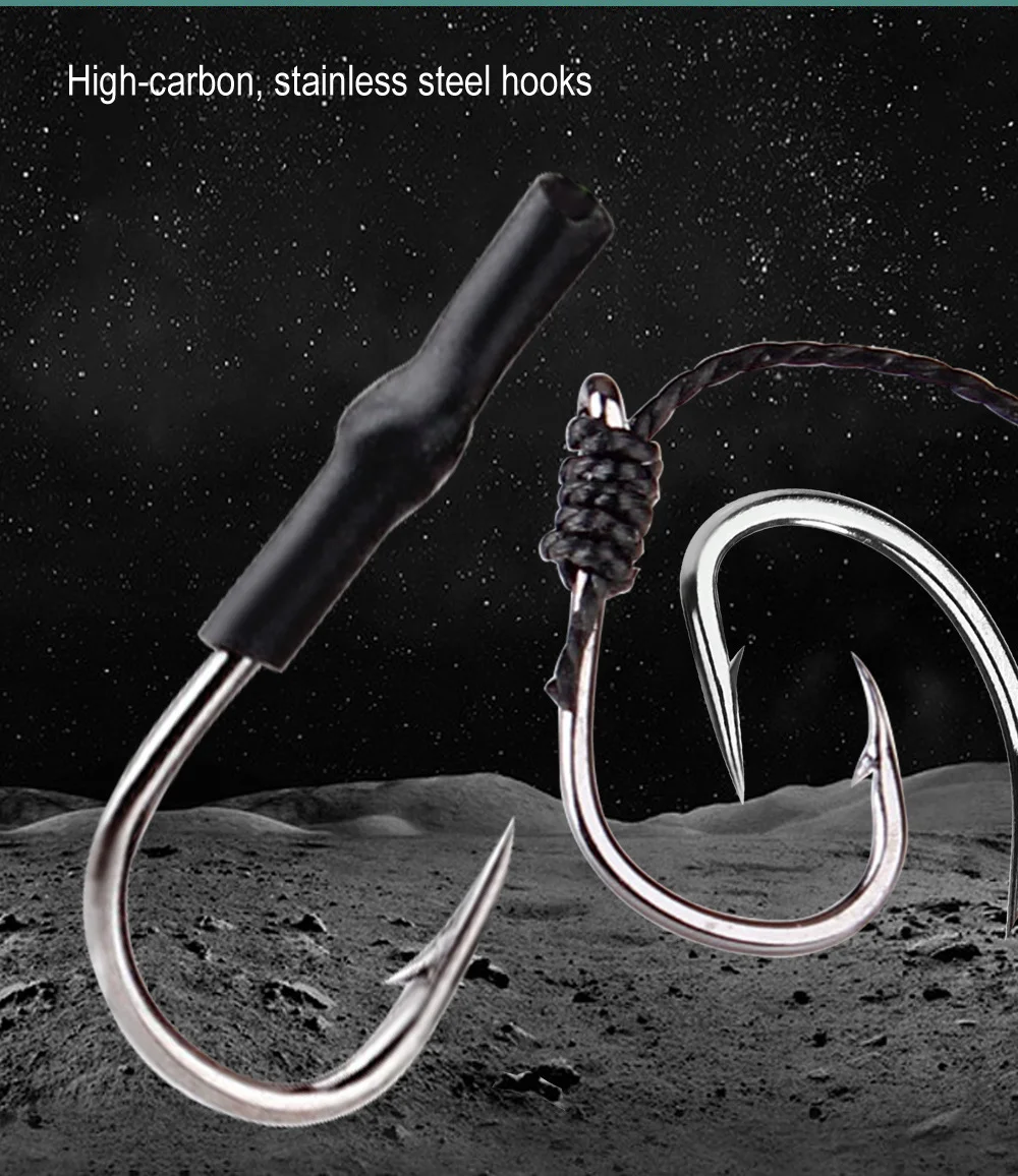 01:High carbon steel barbed hook , it is very strong easily catching big carp fish.