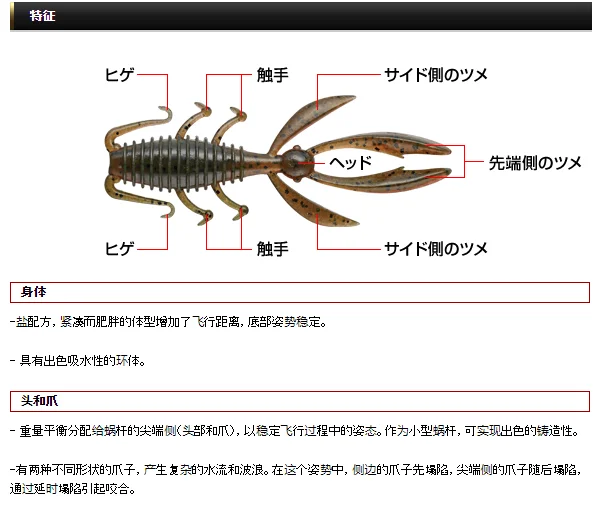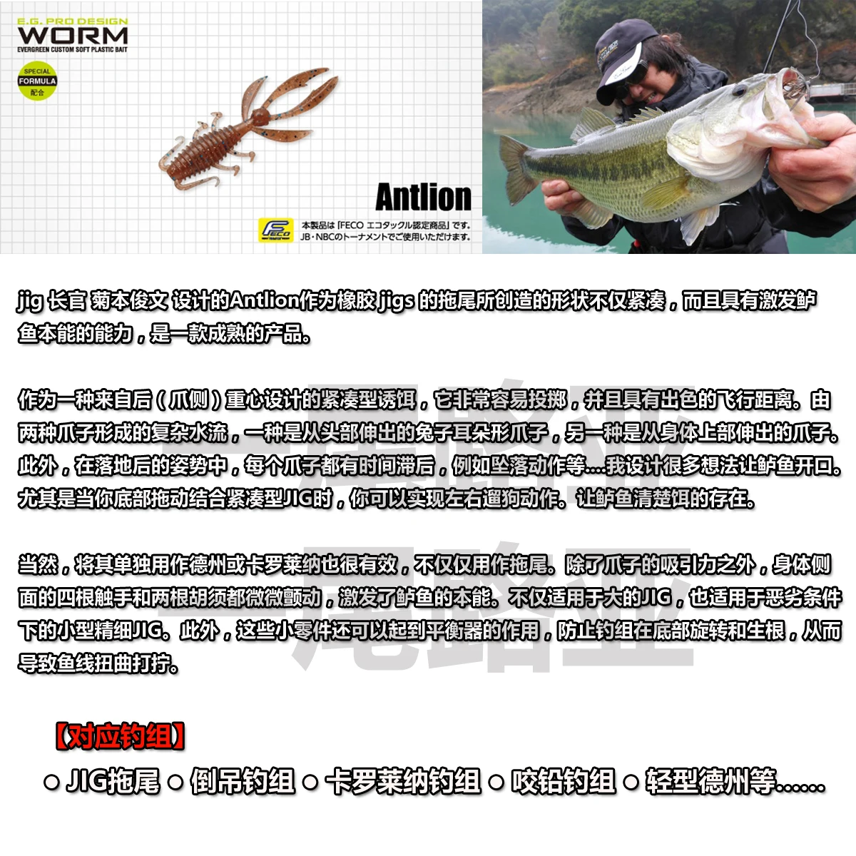 Anzuelo japonés EVERGREEN EG Kikuyuan Junwen ANTLION, cebo suave Luya de 2,7 pulgadas, sendero de camarón negro