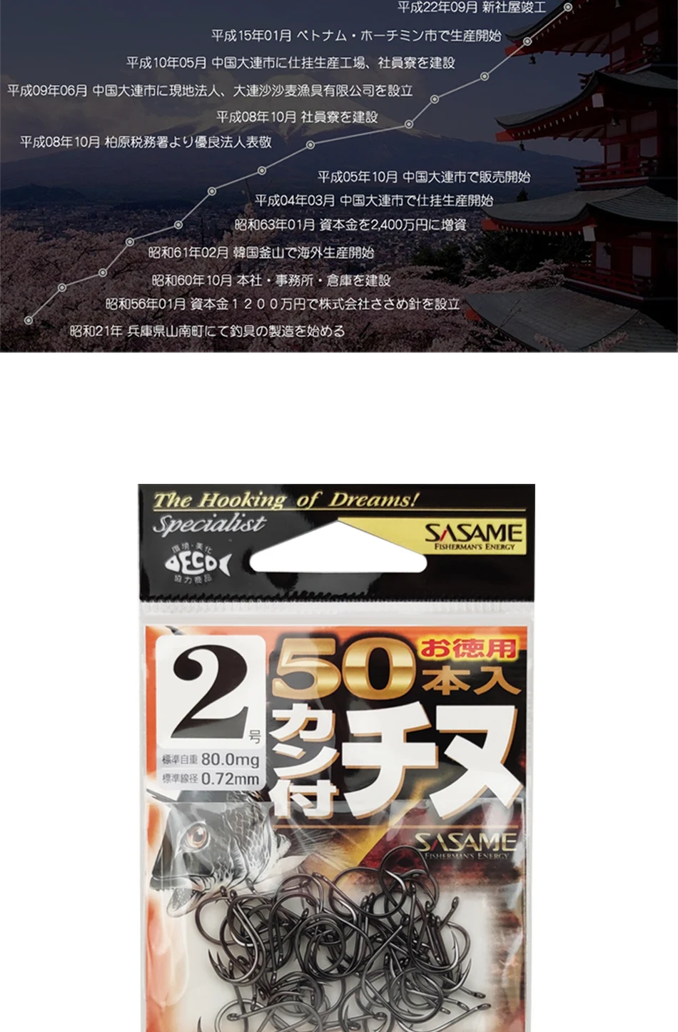 SASAME se centra en la I + D y producción de anzuelos durante más de 70 años.