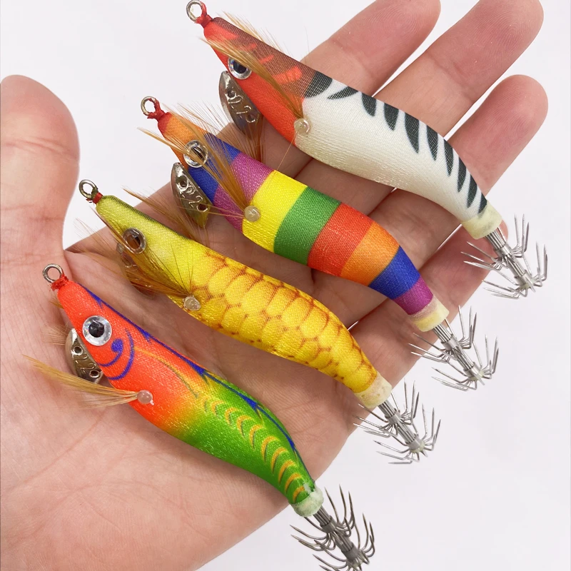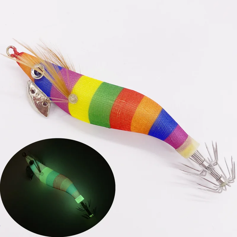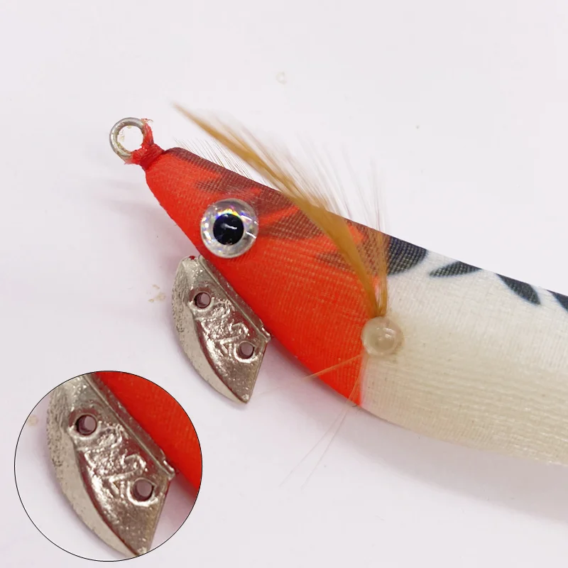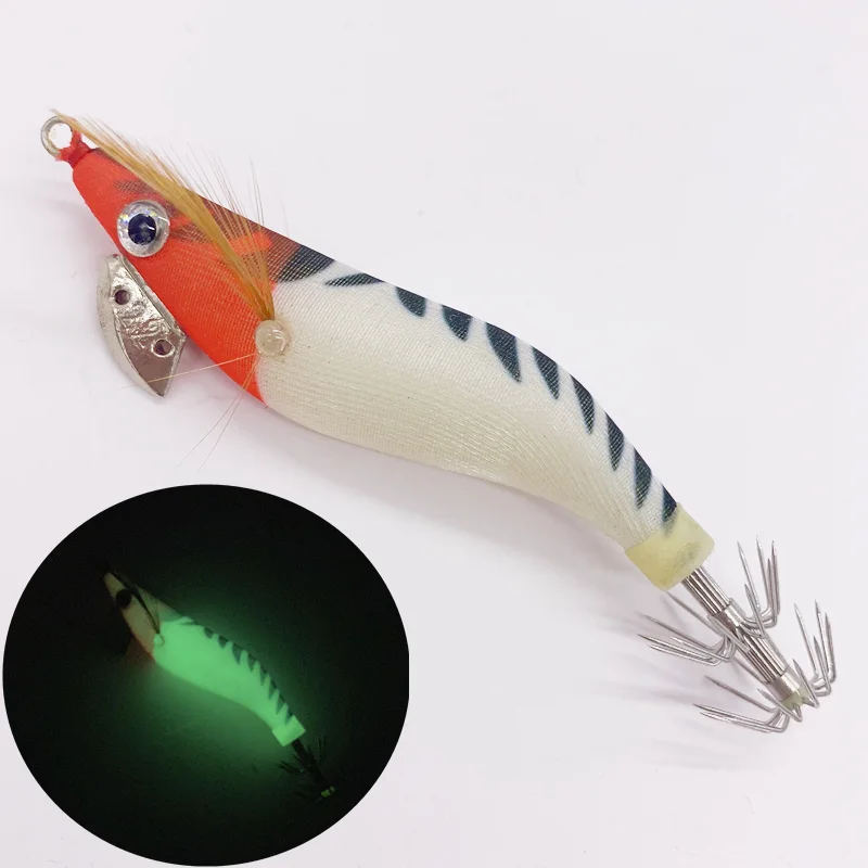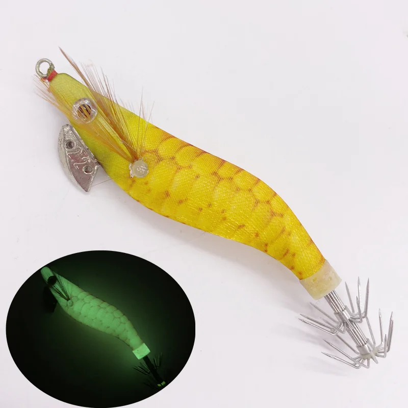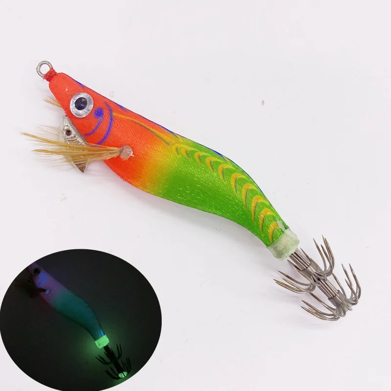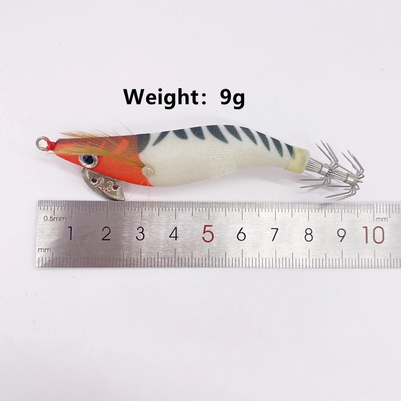 Anzuelo luminoso de madera para pesca en el mar, anzuelo de calamar, cebos Wobblers de pulpo, simulación de Pseudoprawn, cebo de sepia de Camarón, n. ° 2,2, 9g