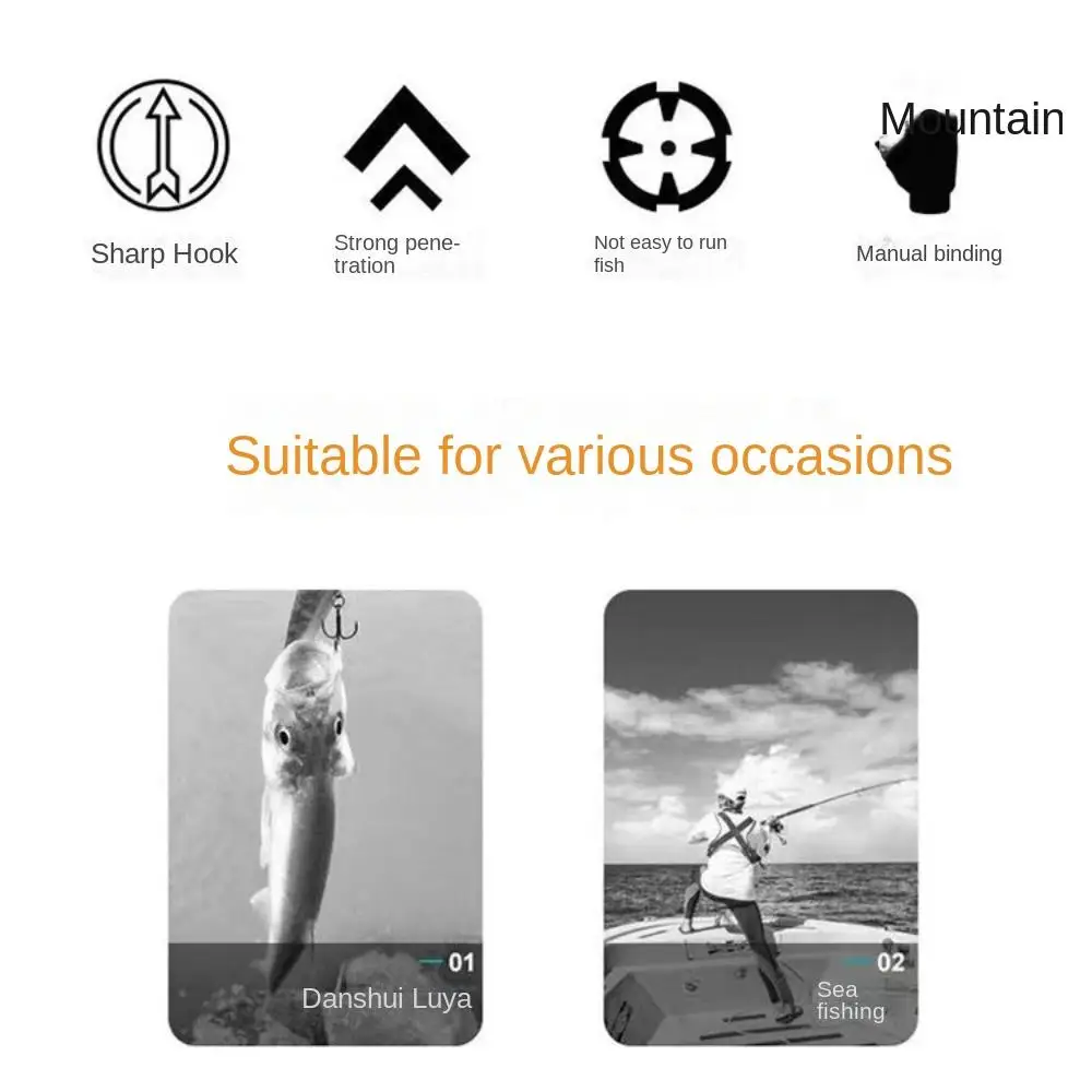Color: como se muestra en la imagen. Estilo: línea larga, línea corta, línea larga de doble gancho. Embalaje: anzuelos de 10 x 100% nuevos y de alta calidad. Adecuado para varias ocasiones, como;. Pesca en el mar, pesca en barco, pesca en agua dulce Nota: 1. El color real del artículo puede ser ligeramente diferente de las imágenes que se muestran en el sitio web debido a muchos factores, como el brillo de su monitor y el brillo de la luz. 2. Permite una ligera desviación de medición manual para los datos.