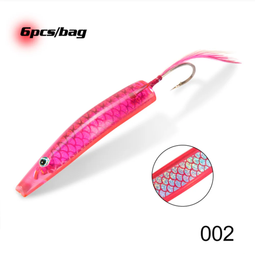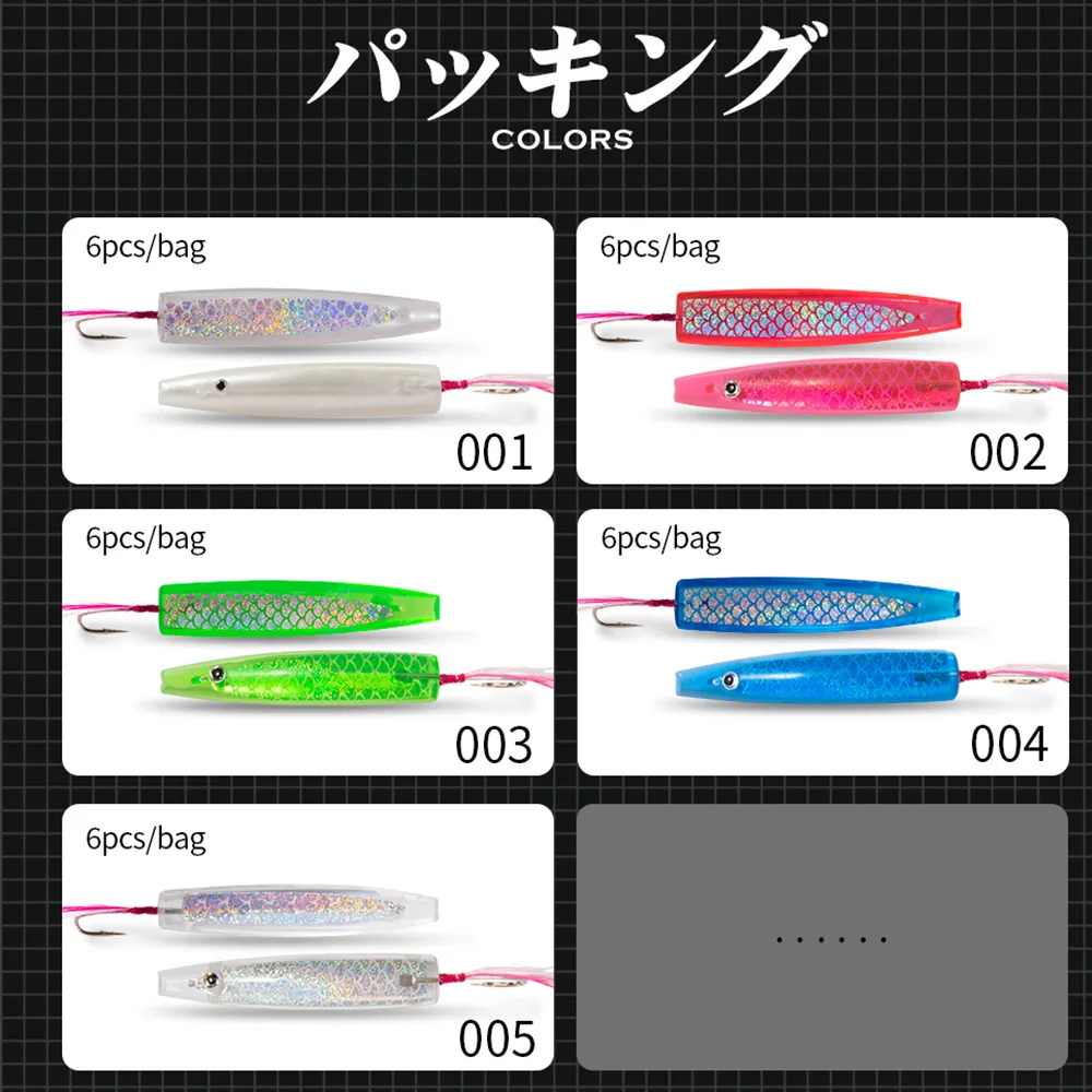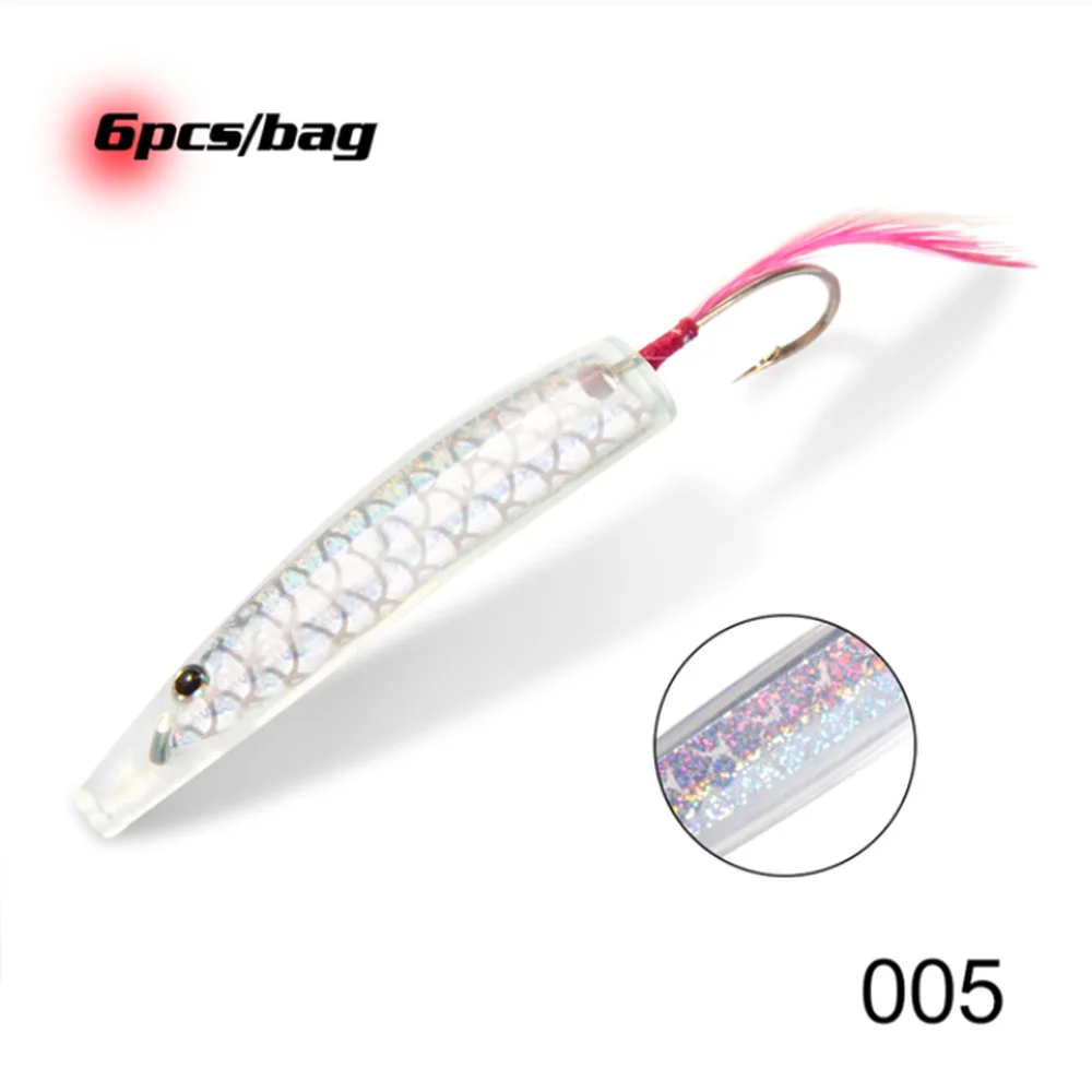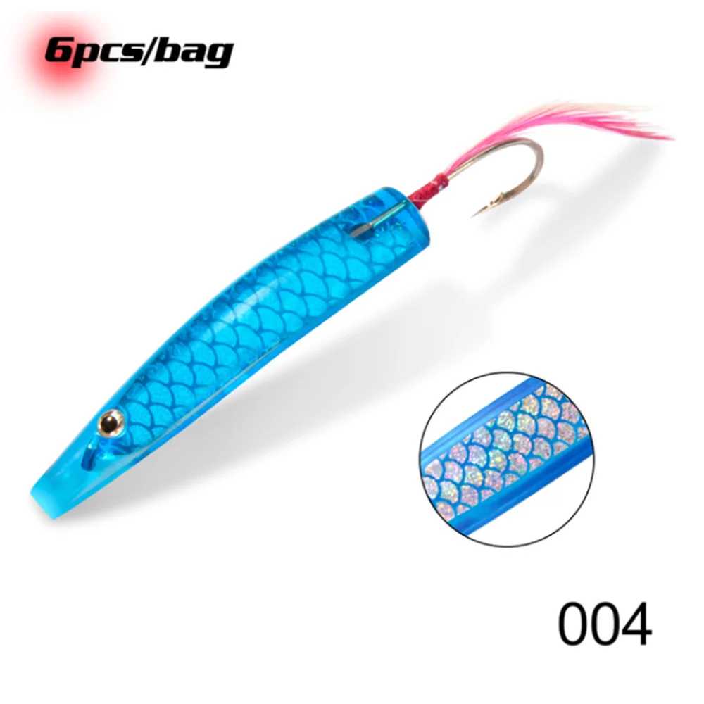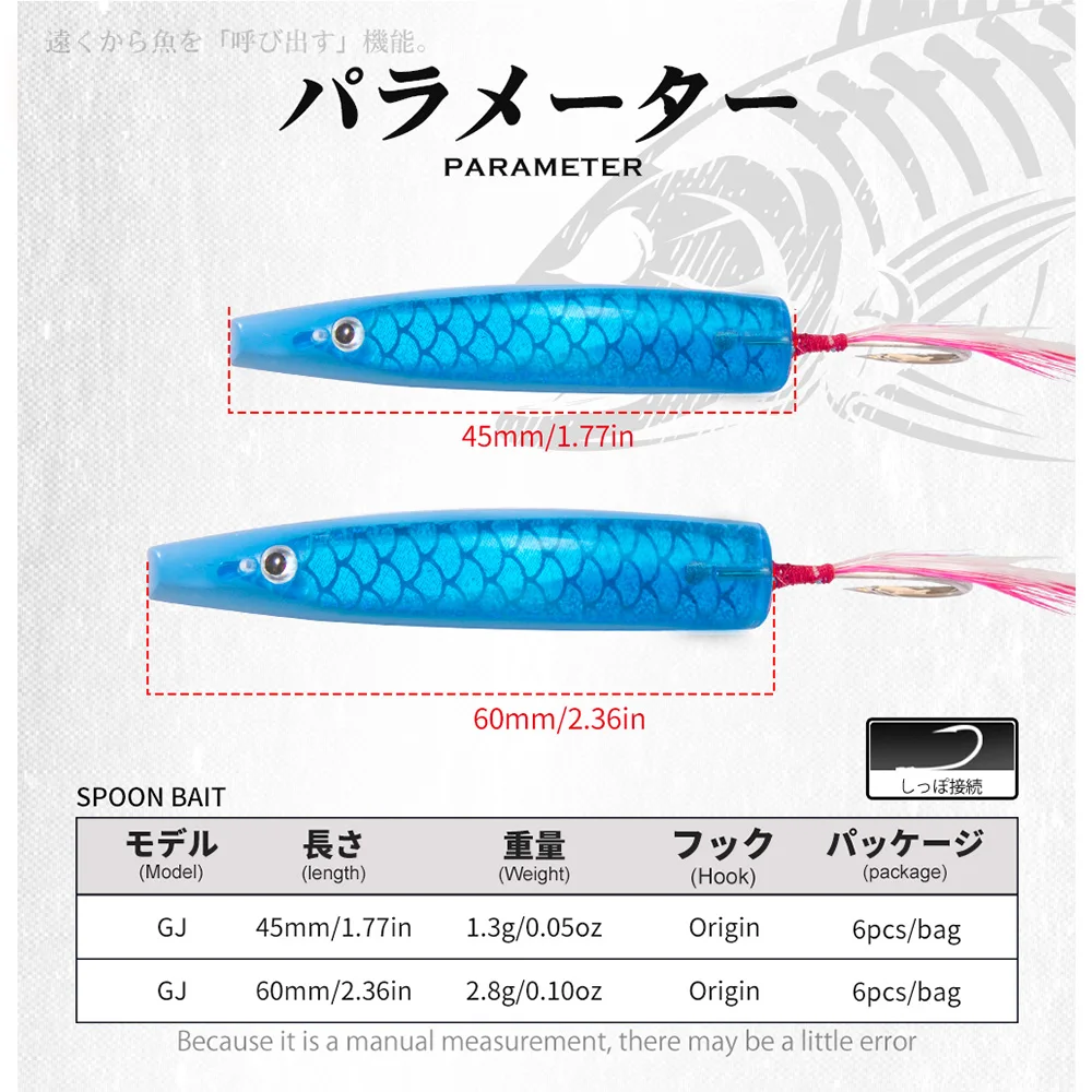 3/6 piezas de cuchara de Metal fundido 45mm 1,3g 60mm 2,8g señuelos 3D con anzuelo de lanzamiento en tierra Jigging señuelo de pesca de lubina de mar cebo Artificial