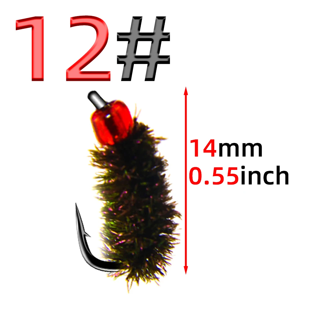 12# Longitud del anzuelo 14 mm/0,55 pulgadas, ancho del anzuelo 5 mm/0,19 pulgadas, adecuado para peces pequeños 20-30 cm