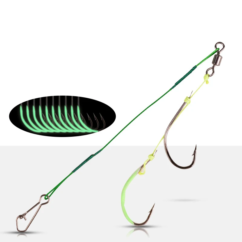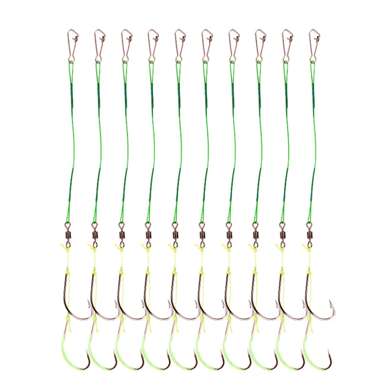 Anzuelo de pesca de 17,5 cm, anzuelos dobles de alambre frontal, anzuelos de cuerda de Anguila, anzuelos de alambre de acero antimordedura, 10 piezas