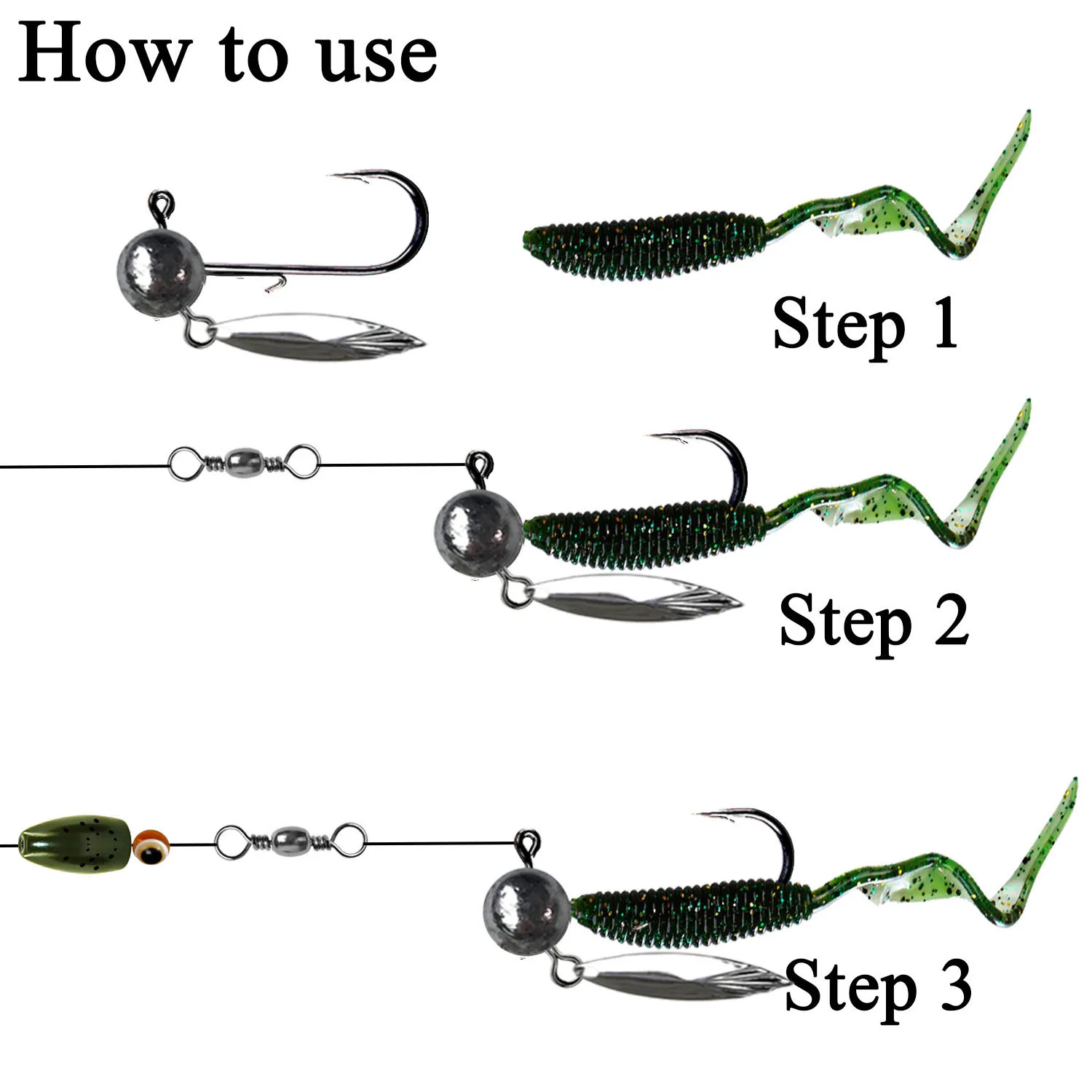 Me gustan estos jigheads. Están bien hechos y con un acabado excelente. El hilo de pescar es fuerte y muy afilado. Me gusta que tengan un pequeño gancho de alambre de acero para sujetar los softbaits. Y la cuchilla es una gran atracción para usar con camarones, shad y grubs. Llegó muy rápido.