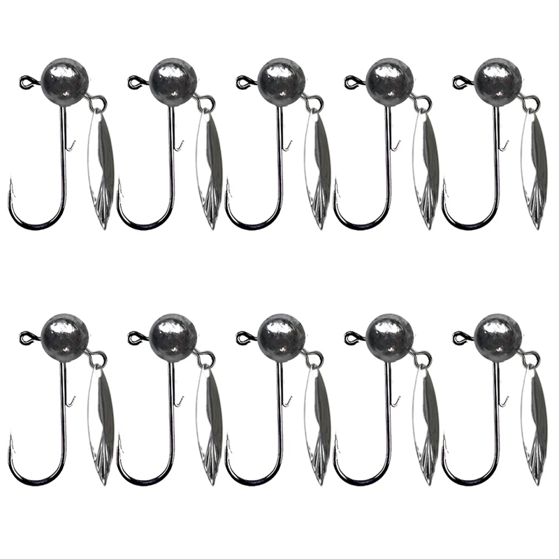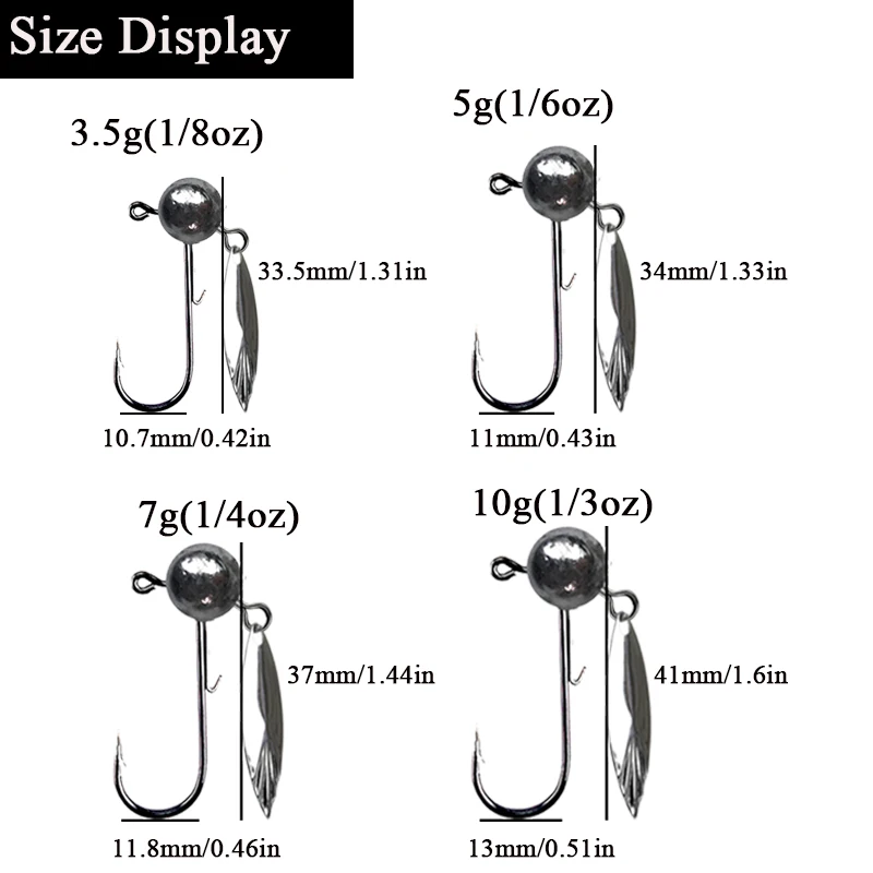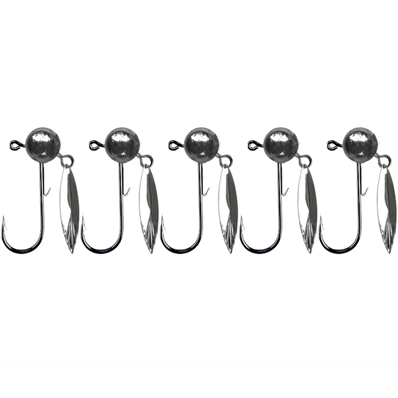 Anzuelo de pesca de 5 piezas, anzuelo de pesca con cabeza de plantilla, 3,5g, 5g, 7g, 10g, anzuelo de bola redonda con hoja, anzuelo sin tejer para pesca de gusanos blandos