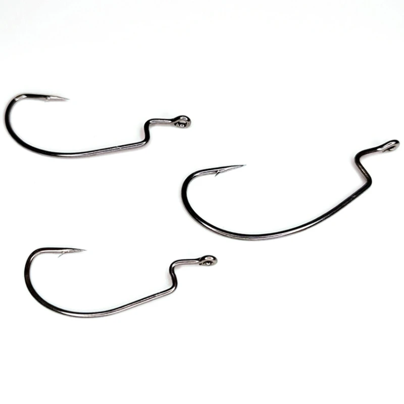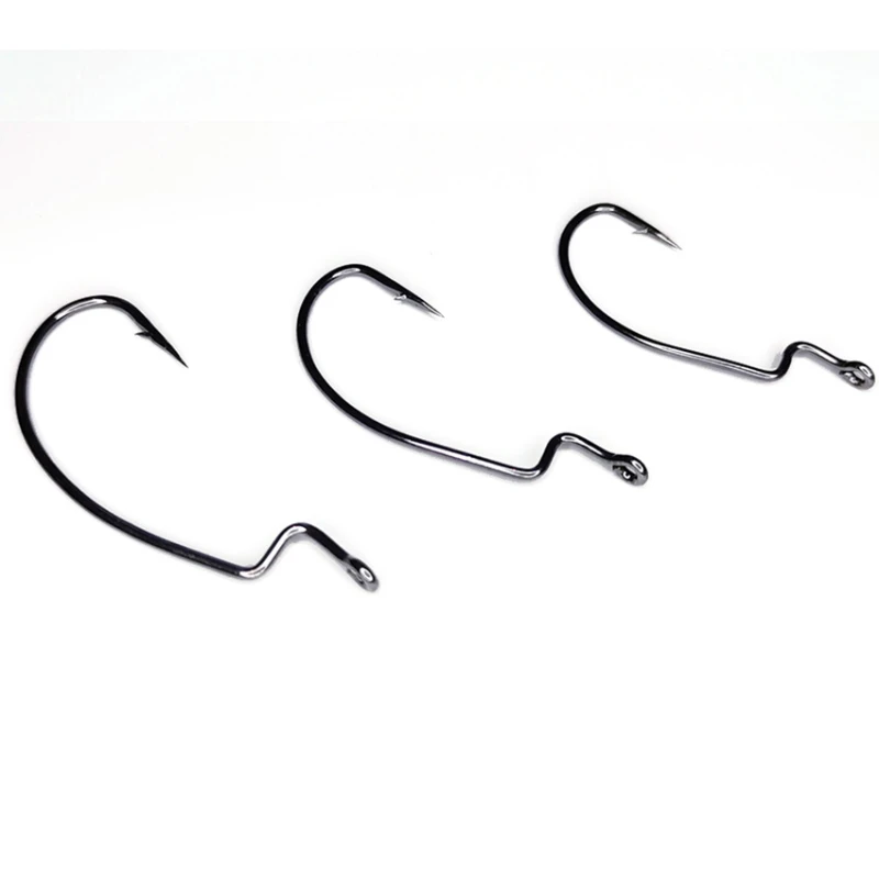 Anzuelo de Pesca de 50 piezas, aparejos de Pesca con ojos circulares, cebo blando con púa, cuerpo plano, Accesorios Negros, equipo para carpa