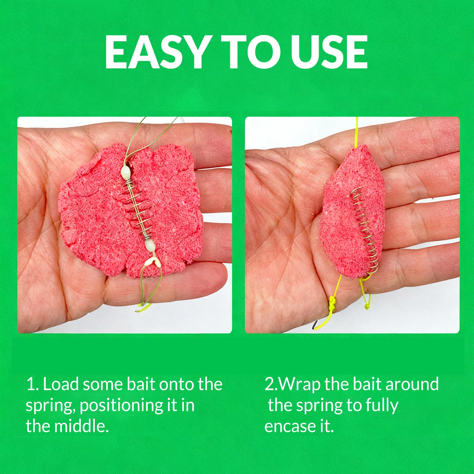 Fácil cebo: la trampa para jaula de cebo permite un cebo rápido y conveniente.Estos anzuelos Hair Rigs cuentan con una trampa para jaula de cebo con alimentador de resorte que mantiene el cebo en su lugar de forma segura, asegurando el máximo atractivo para la carpa.