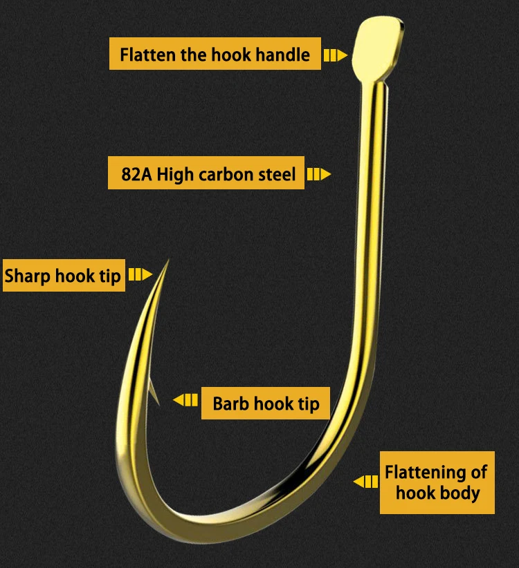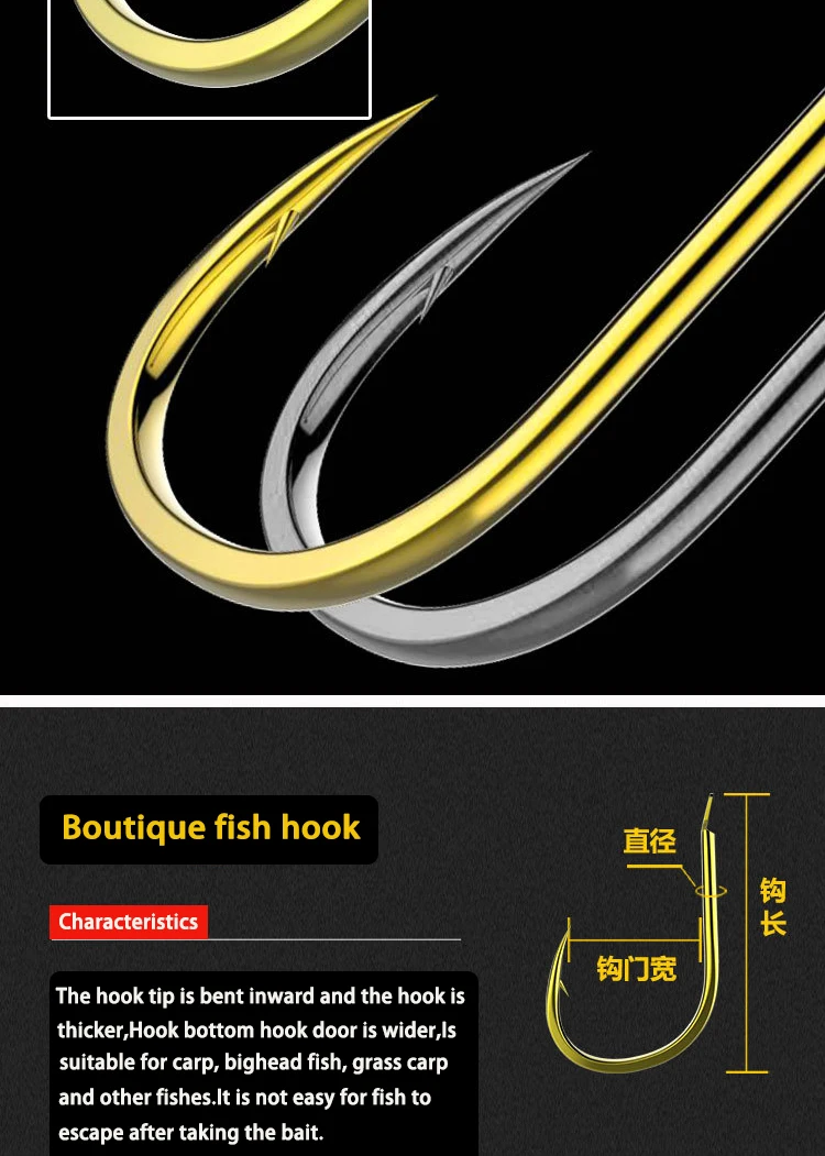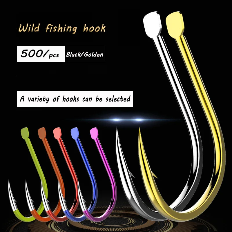 Anzuelo de pesca a granel, accesorio de pesca de carpa, con púas de oro negro y carbono, objeto grande, 500 Uds.
