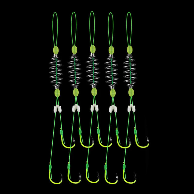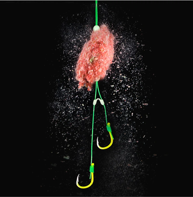 Anzuelo de pesca de acero al carbono fluorescente, anzuelo de doble púas con línea de PE, anzuelo de explosión, anzuelo antibobinado J380, 5 par/lote