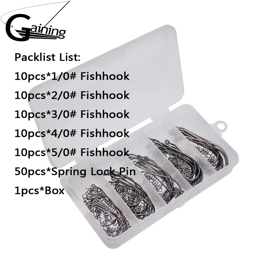 50 unids/lote 1/0 #-5/0 # Fishhook con resorte Pin de bloqueo Crank Connect Fishing hooks assist Soft Lures Pin Jig Hook Fishing Tackle