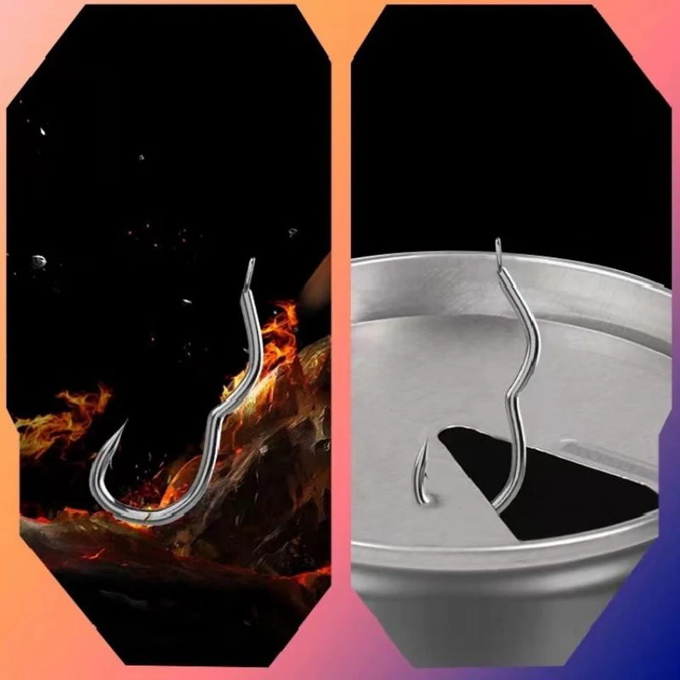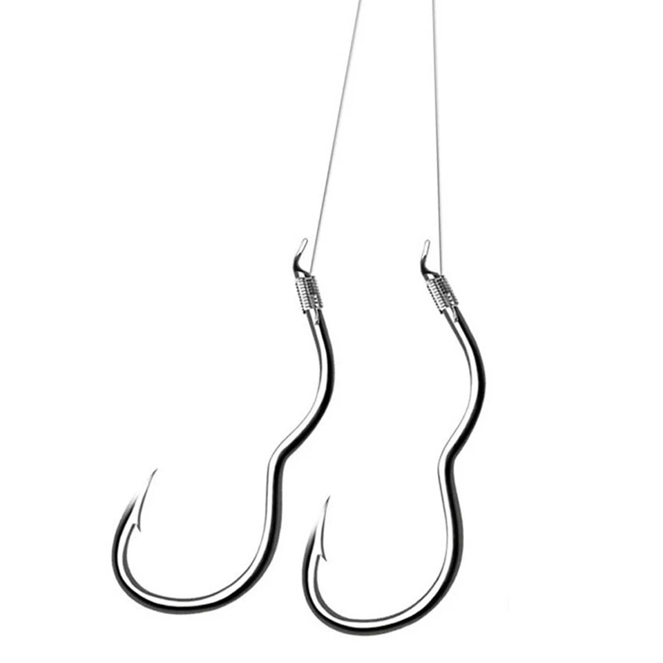 Los peces tienen la costumbre de tragar y escupir repetidamente los anzuelos para probar el peligro, y la presente invención está desarrollada para peces a los que les gusta escupir anzuelos. Esquinas redondeadas de doble ancho, entrada de anzuelo plana, el anzuelo se voltea automáticamente cuando el pez se cierra y abre la boca, de modo que la punta del anzuelo puede penetrar en la boca del pez, realizando así el apuñalamiento automático de peces
