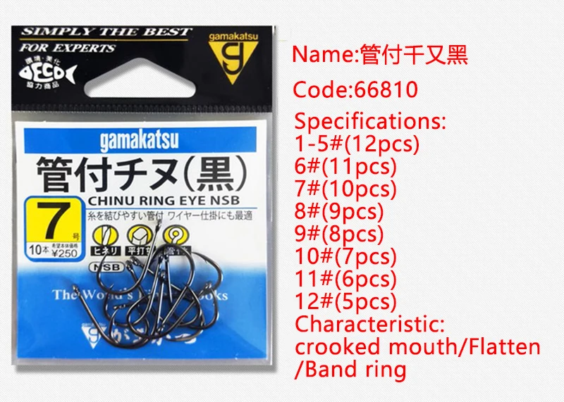 Anzuelo de pesca de acero de alto carbono Gamakatsu, anzuelos de pesca con mosca con púas, soporte de cebo de pesca de estanque de gusano, agujero de plantilla, 66810