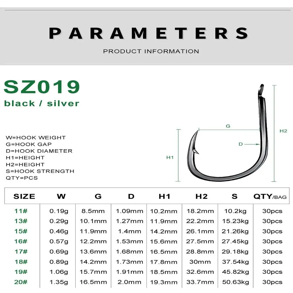 Tamaño: 11-13-15-16-17-18-19-20 # Anzuelos: anzuelos individuales cantidad: 30 unids/lote color de los Anzuelos: negro, plateado embalaje: 30 Uds × anzuelos Nota: 1. El color real del artículo puede ser ligeramente diferente al de las imágenes que se muestran en el sitio web debido a muchos factores, como el brillo de su monitor y el brillo de la luz. 2. Permite una ligera desviación de medición manual para los datos.
