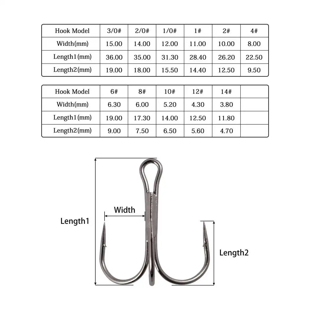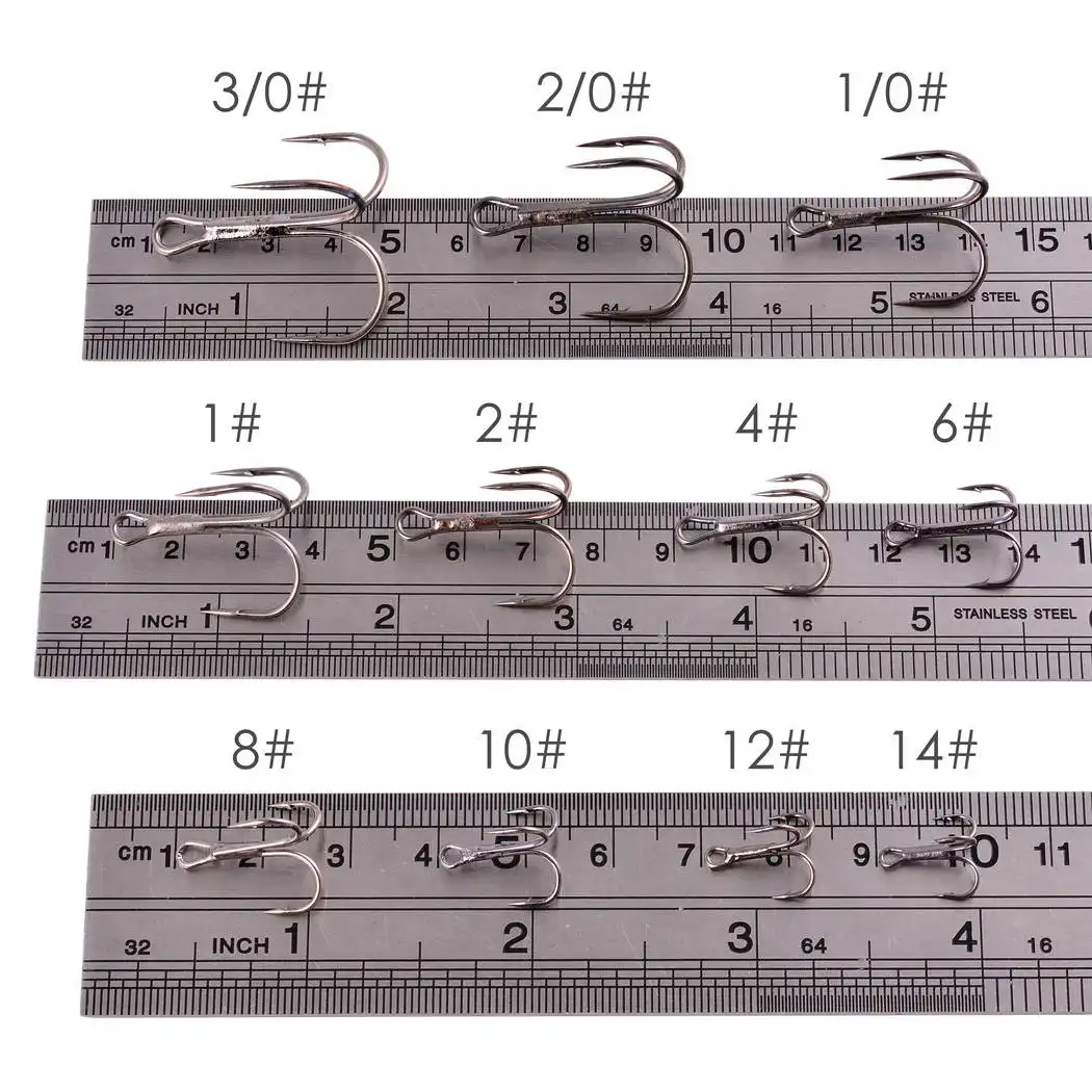 Anzuelo de pesca de acero con alto contenido de carbono, anzuelos triples volteados, aparejos de pesca de curva redonda, agudos para lubina, unids/lote 10/caja, 10 # - 3/0 #