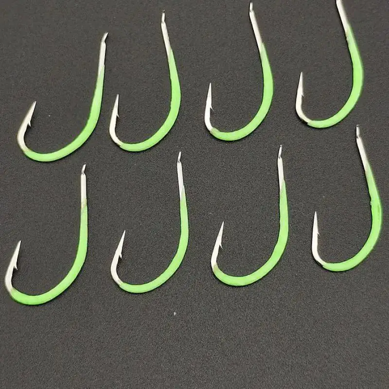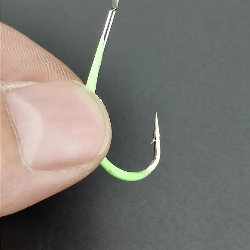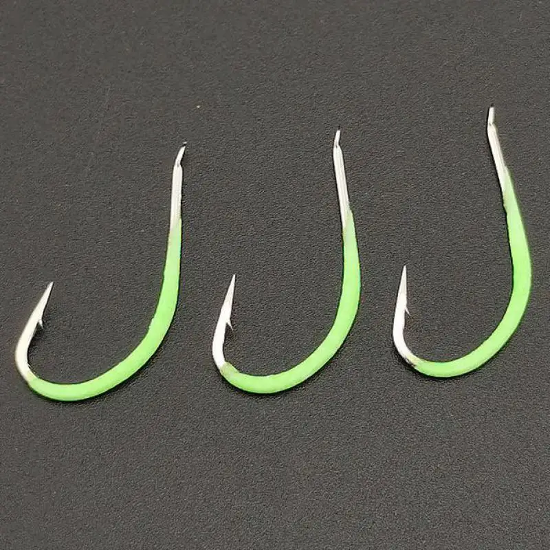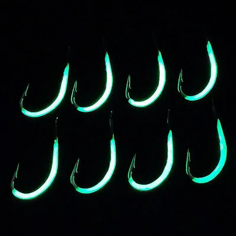 10 unids/lote 9 #-18 # anzuelo de pesca de púas de acero luminoso de alto carbono forma anular inoxidable anzuelos noctilucentes accesorios Pesca