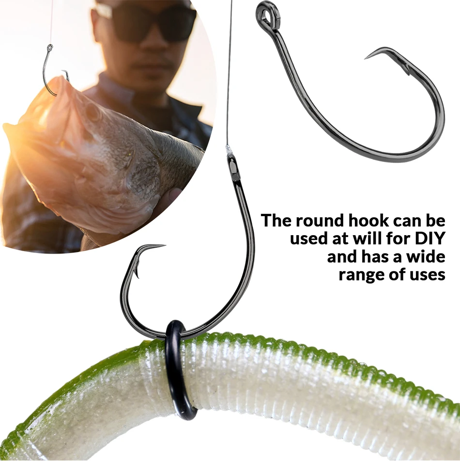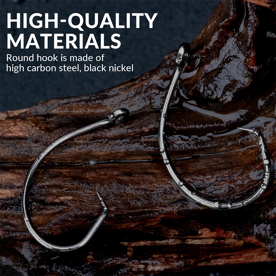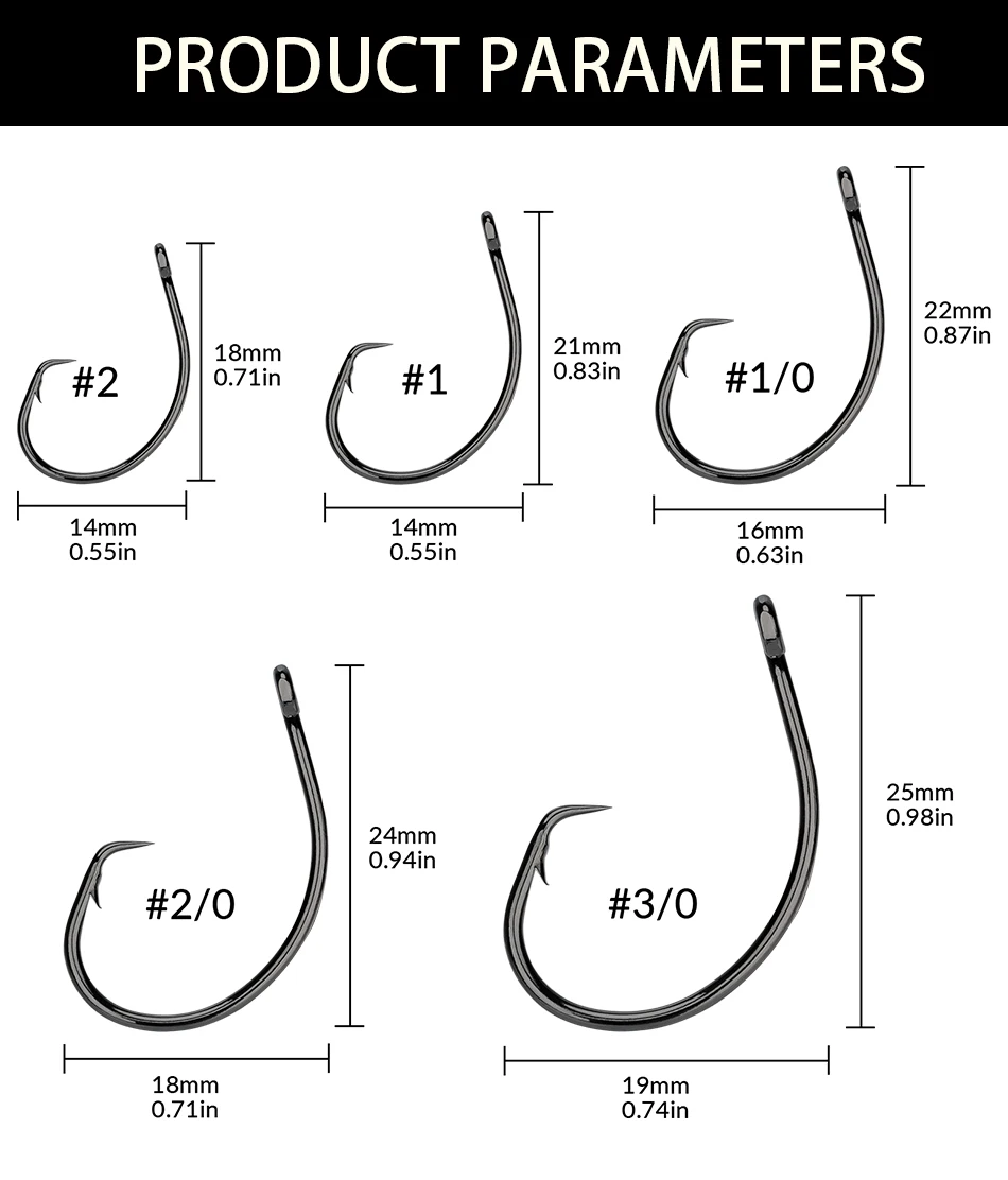 2. El gancho circular en línea garantiza que el gancho viaje a la esquina de la boca, para una fácil extracción del gancho y más trampas.