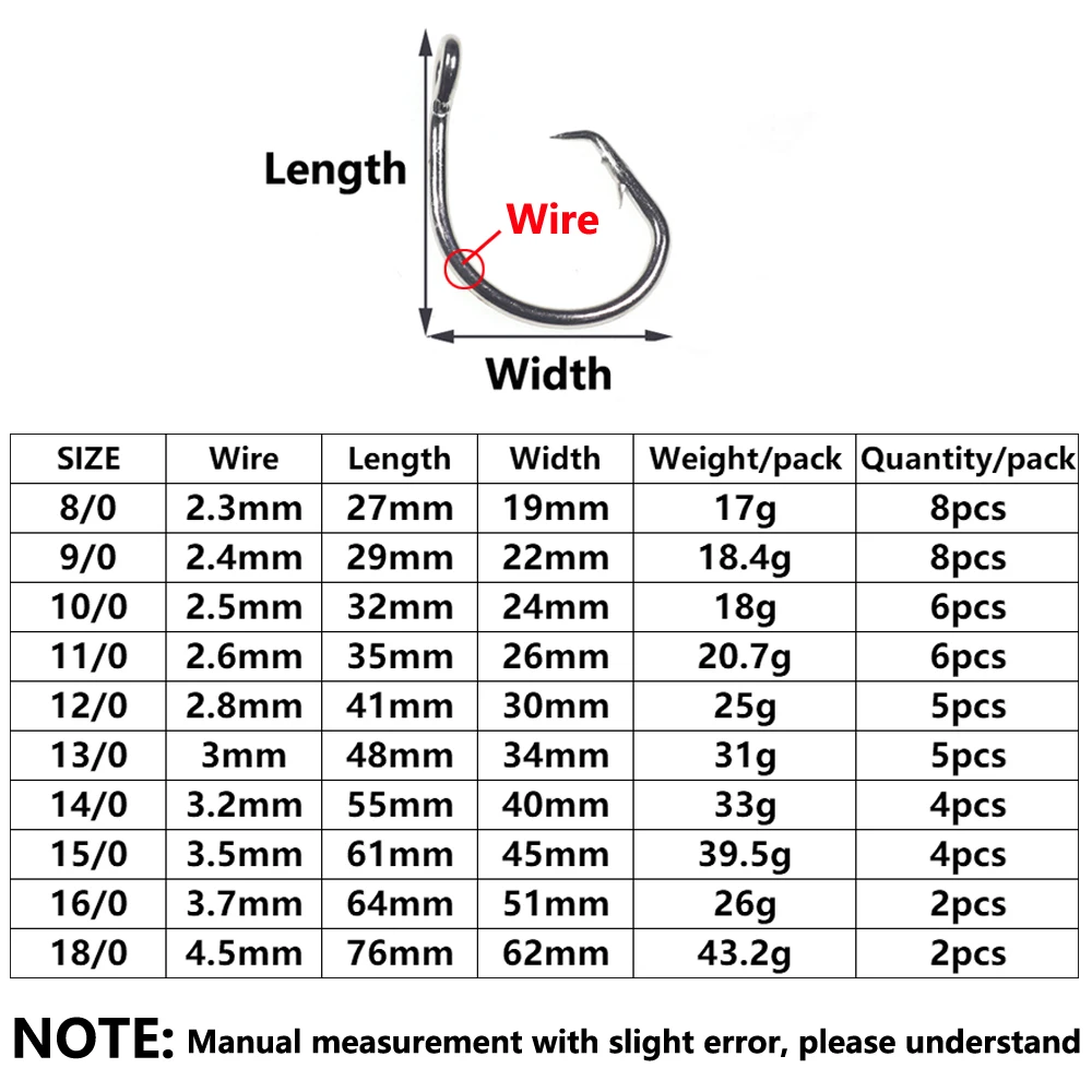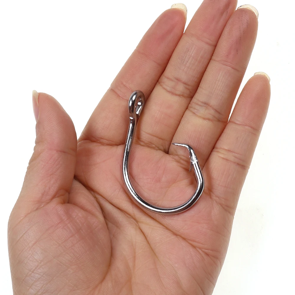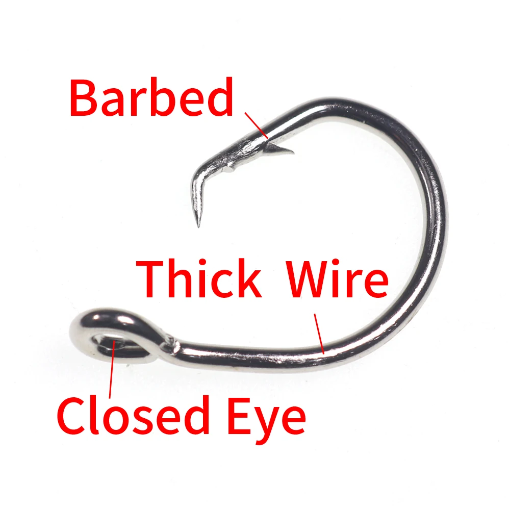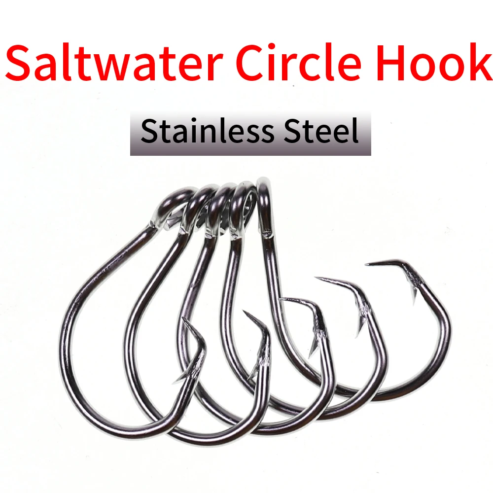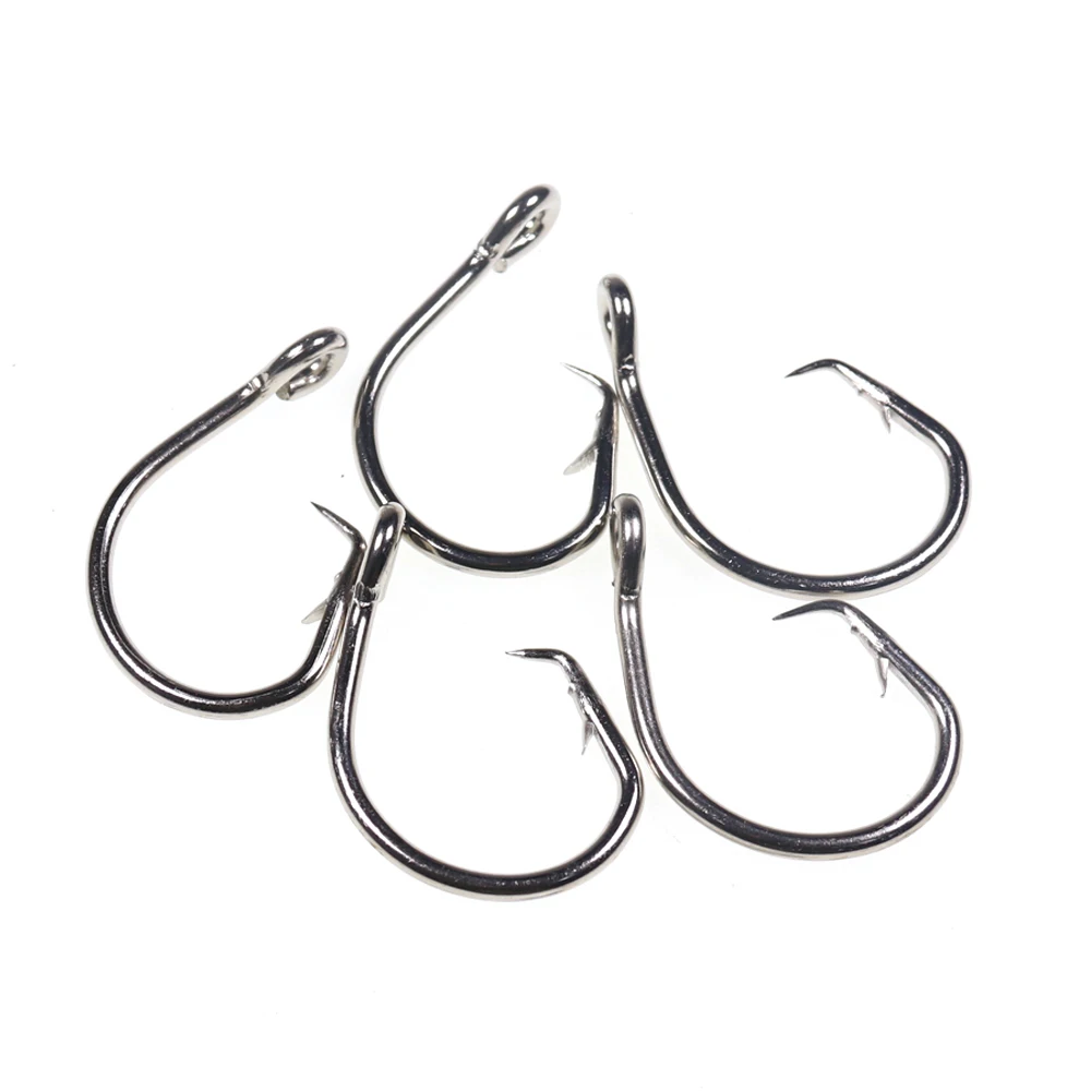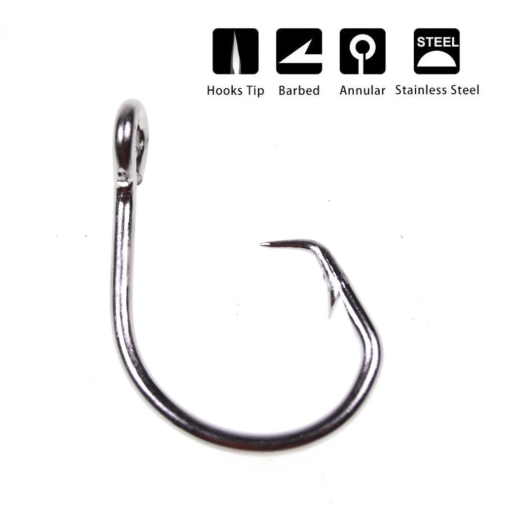 Anzuelo de pesca de agua salada 8/0-18/0, anzuelo circular de púas de acero inoxidable importado, anzuelo de aparejo de arrastre fuerte para pesca de atún y tiburón