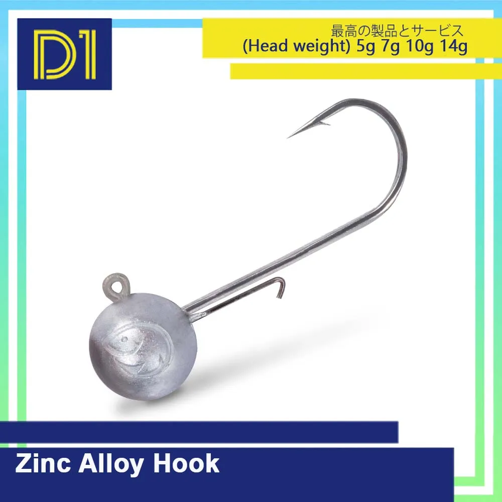 Anzuelo de pesca Ajing D1, 5g, 7g, 10g, 14g, cabeza de aleación de Zinc, peso de plantilla fuerte y afilado 2022, señuelo, aparejos de pesca