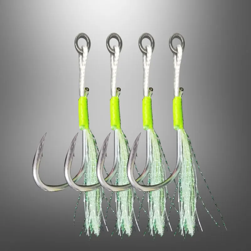 Anzuelo de pesca de alambre inoxidable suave, anzuelos de Jigging lento/rápido, asistencia de púas individuales, señuelo de plantilla brillante, 10 pares