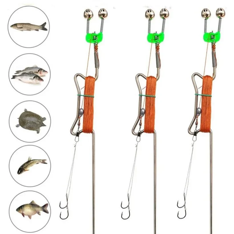 Anzuelo de pesca automático, artefacto integrado de acero inoxidable grueso, desenganche, línea de mano, inserción de suelo, hierba, carpa