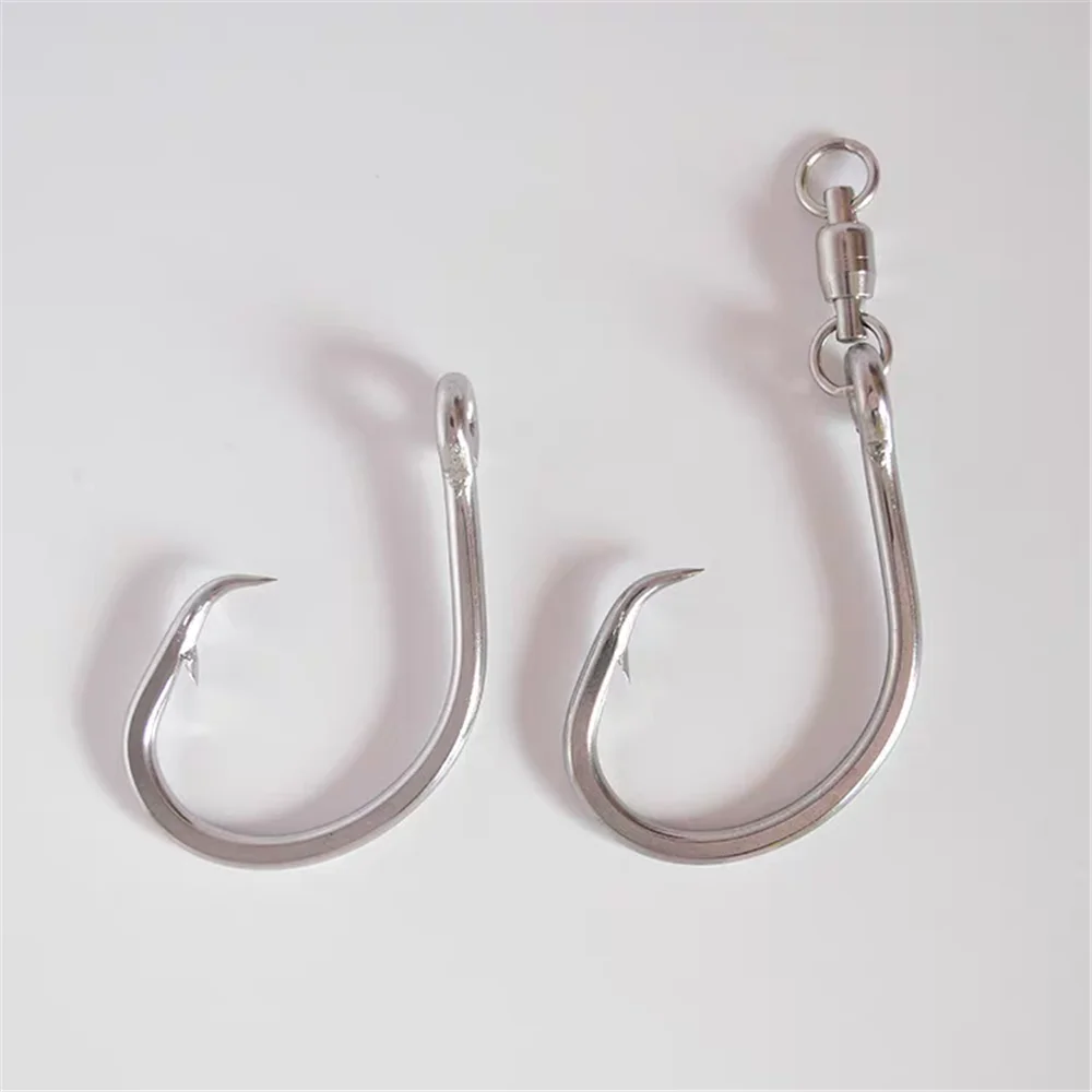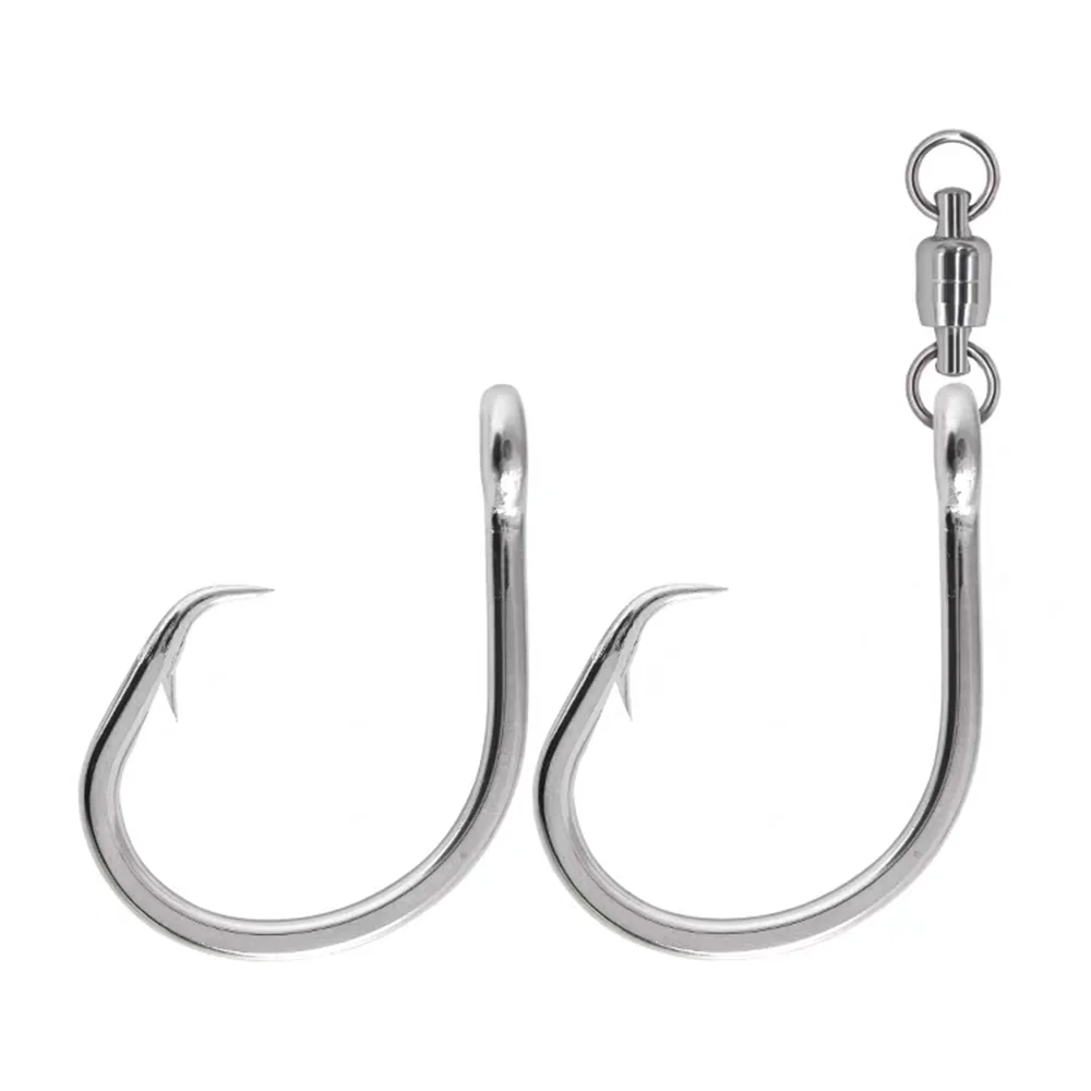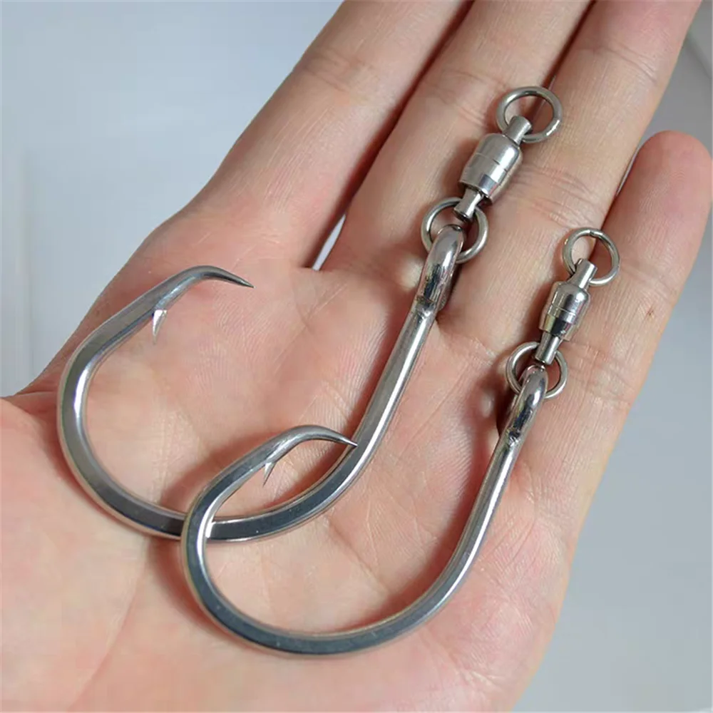 Anzuelo de Pesca para barco de mar, accesorio giratorio de rodamiento de bolas de acero inoxidable con ojos de púas, suministros de conector para atún, 10 piezas