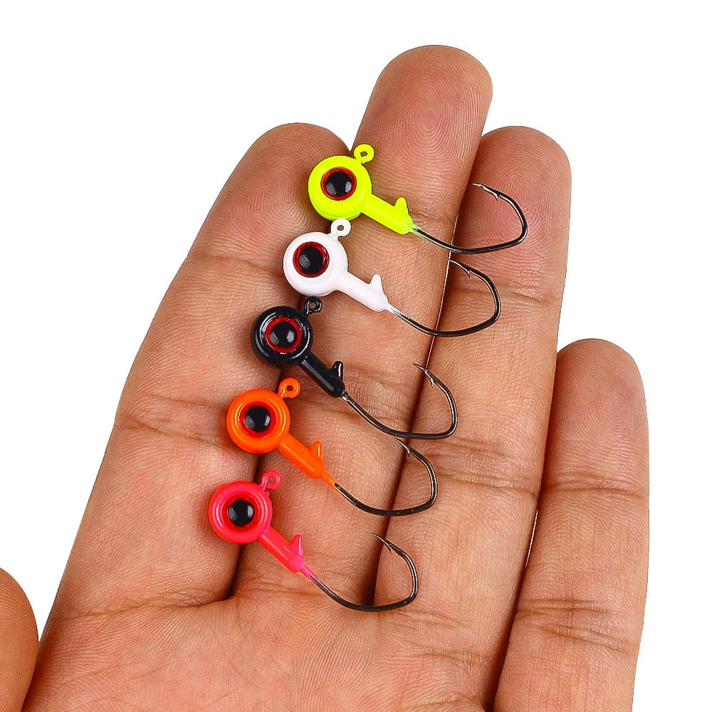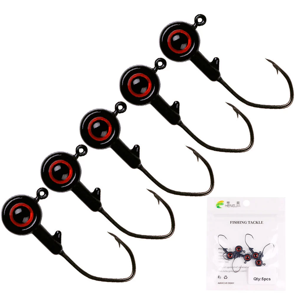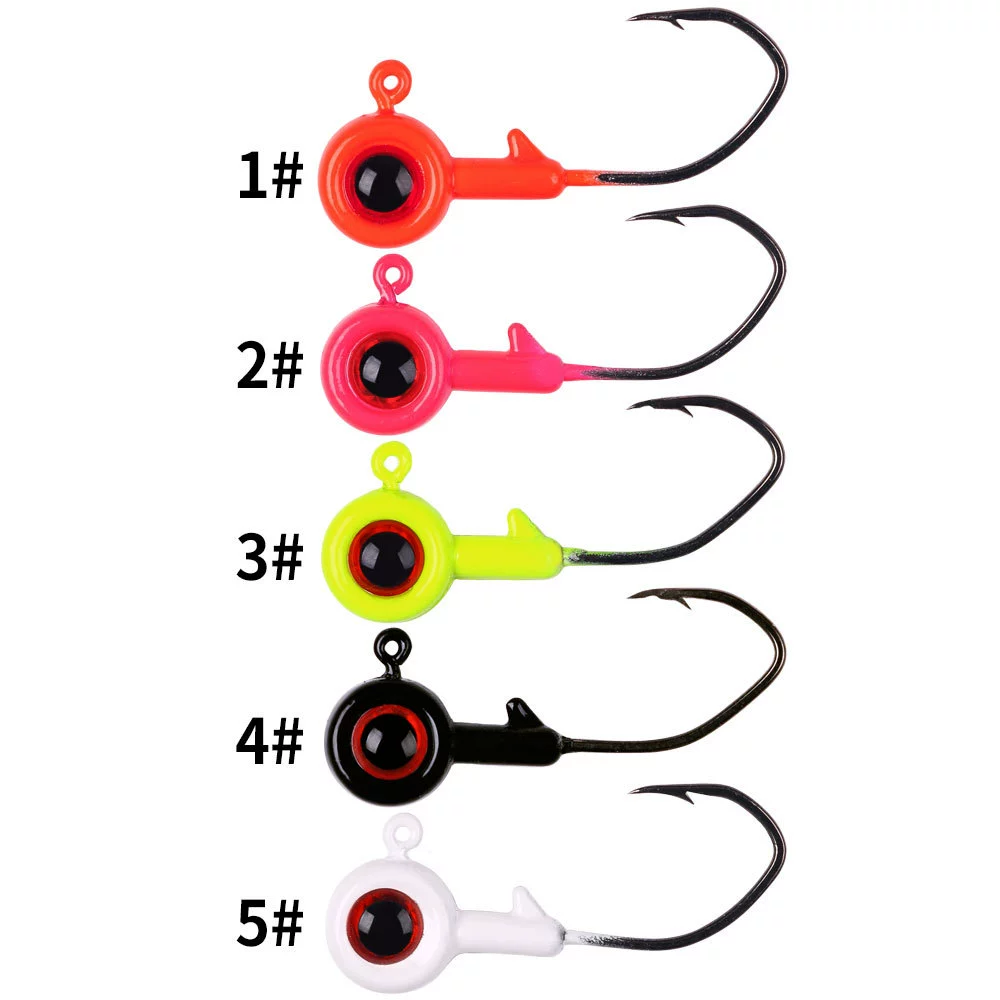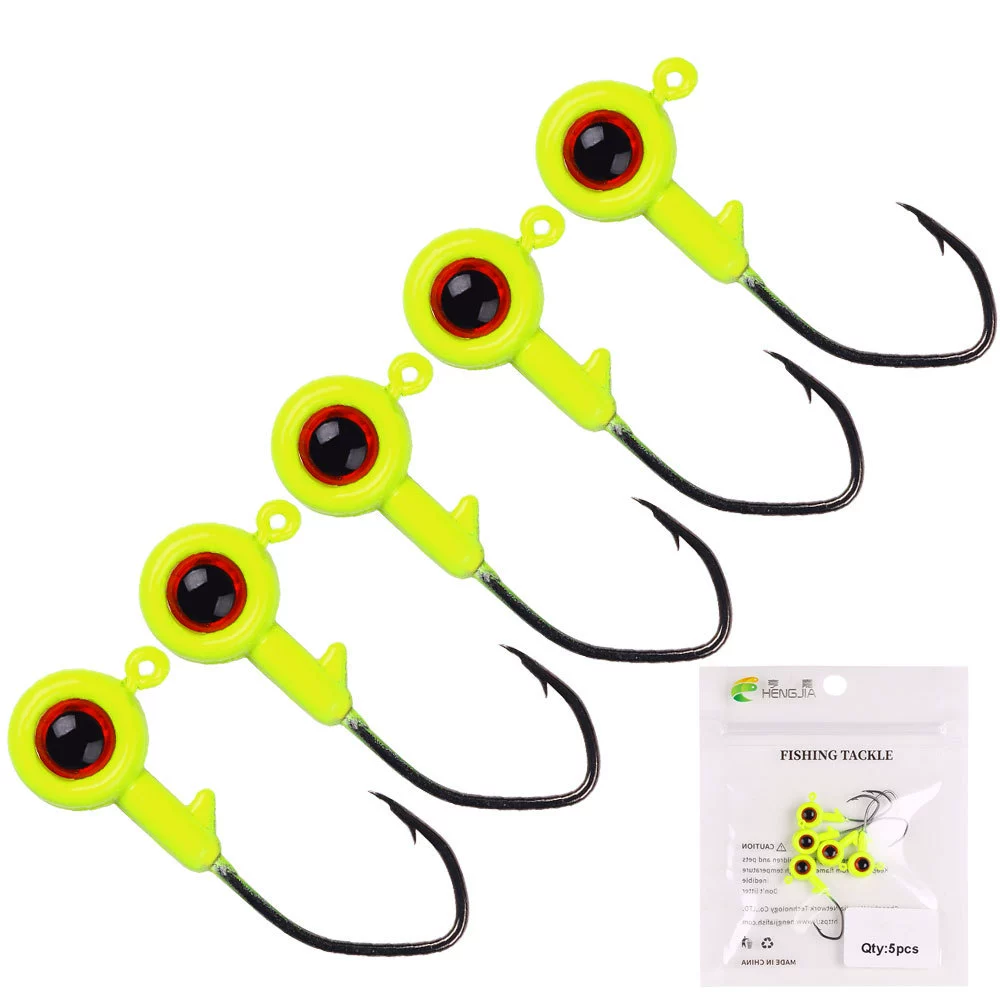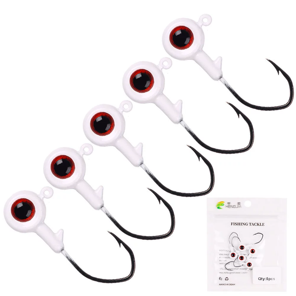 Anzuelo de pesca con cabeza de anzuelo, 5 uds., para señuelo suave, gusano, cebo vivo, tipo de pez, anzuelo de plantilla, ojo 3D, agua salada, lubina, trucha, Bluegill