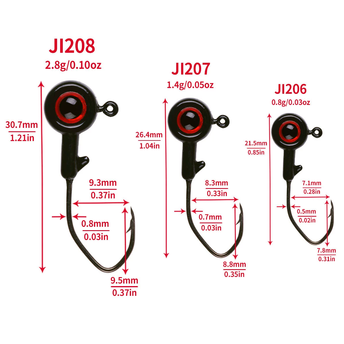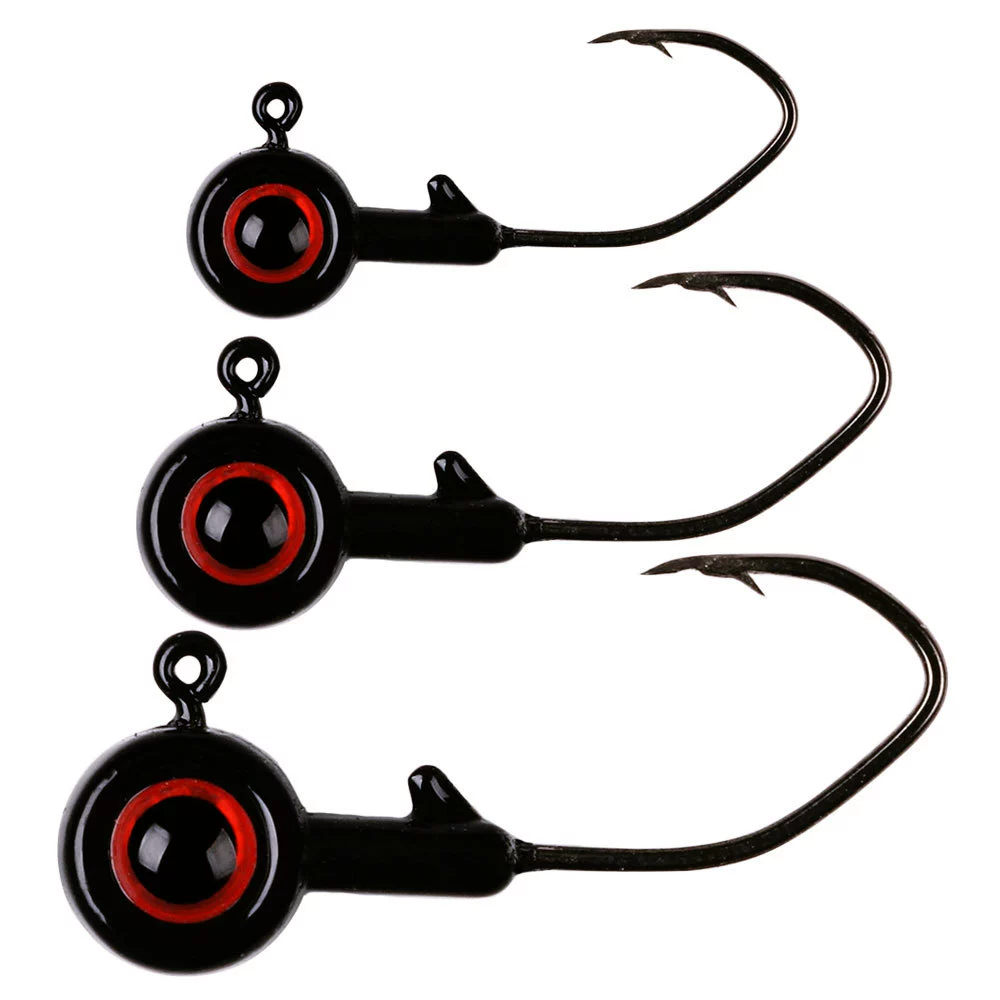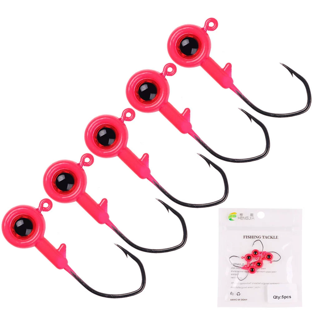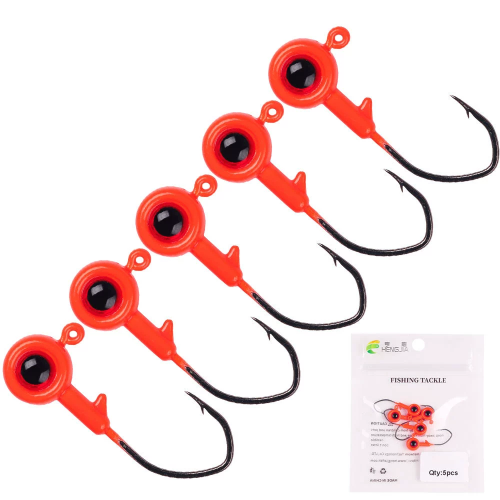 Anzuelo de pesca con cabeza de anzuelo, 5 uds., para señuelo suave, gusano, cebo vivo, tipo de pez, anzuelo de plantilla, ojo 3D, agua salada, lubina, trucha, Bluegill