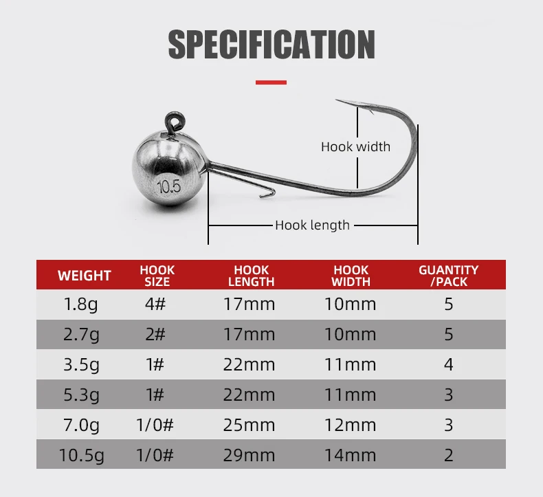 ¡Jighead de muy buena calidad, excelente! El anzuelo es muy afilado y está perfectamente recubierto. El peso es preciso. ¡Volveré a comprar, gracias!