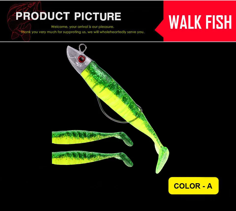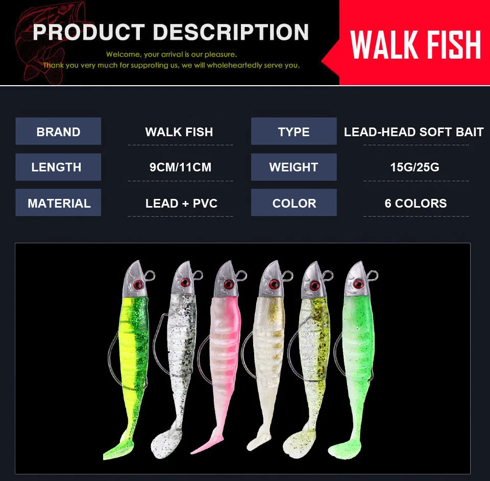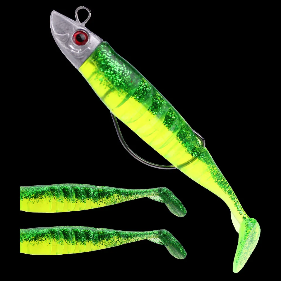 Anzuelo de Pesca con cabeza blanda, señuelos artificiales de gusano, cola en T, 9cm/15g, 11cm/25g