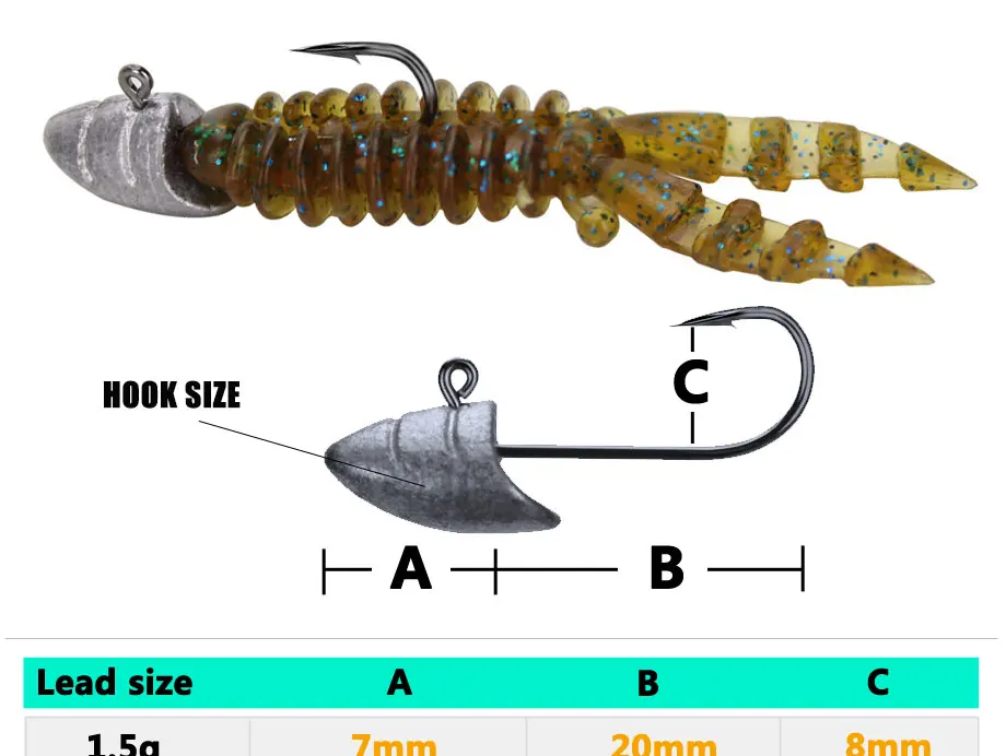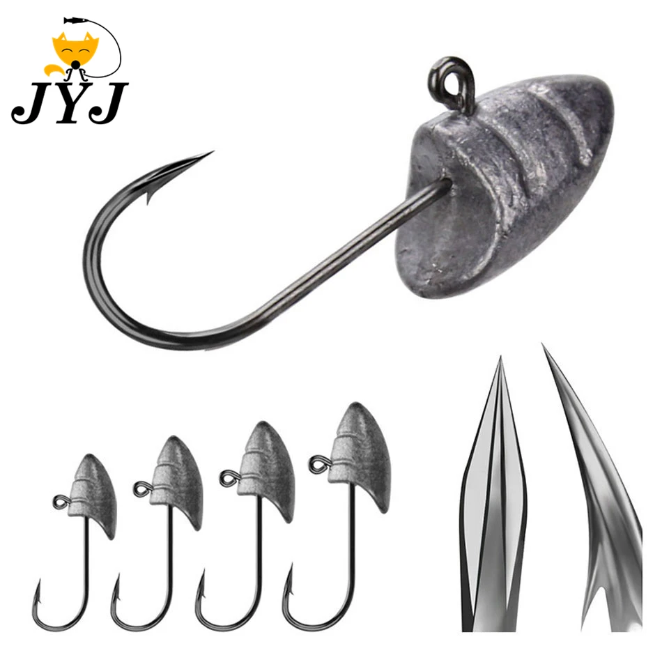 Anzuelo de pesca con cabeza de Caracol de Río, anzuelo pequeño con cabeza de plomo de 1,5g, 2,5g, 3,5g y 5g, anzuelos para señuelos blandos, aparejos de pesca