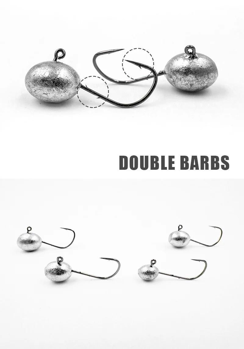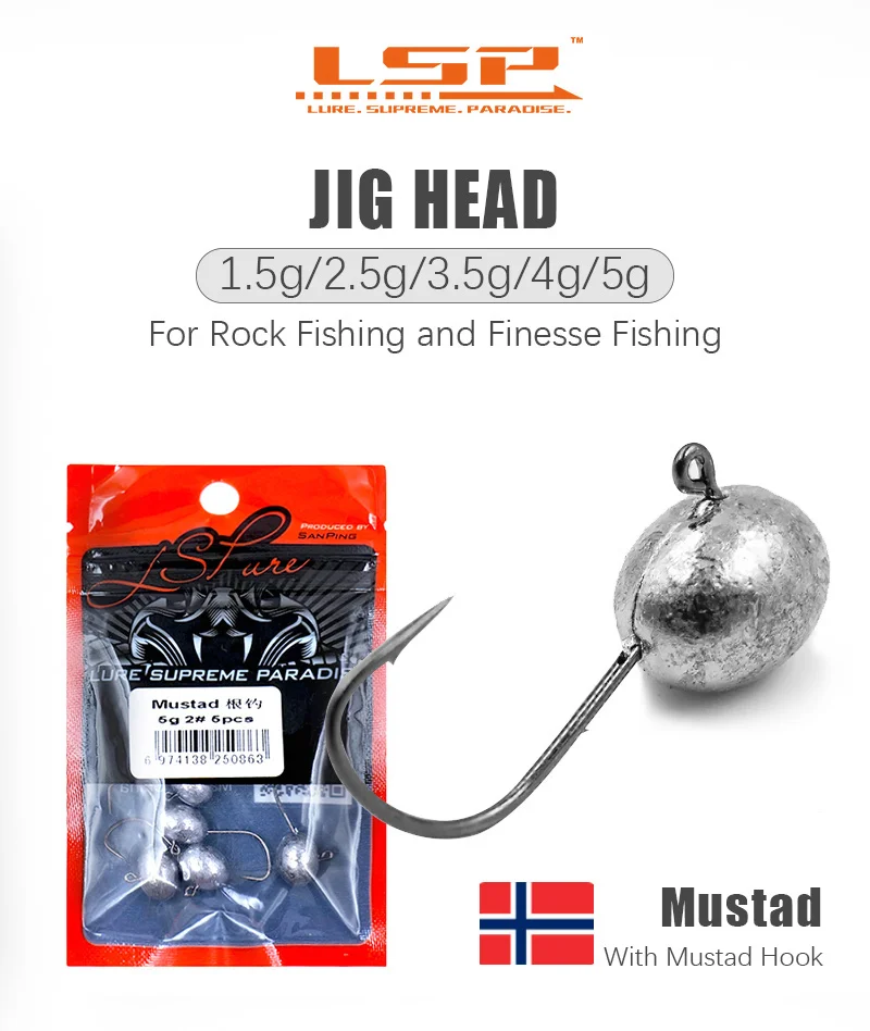 Anzuelo de cabeza de plantilla LSP, anzuelo de pesca de 5 piezas con anzuelos de pesca de roca Mustad, doble púas 1,5g 2,5g 3,5g 4g 5g, accesorios de pesca de Lucio.