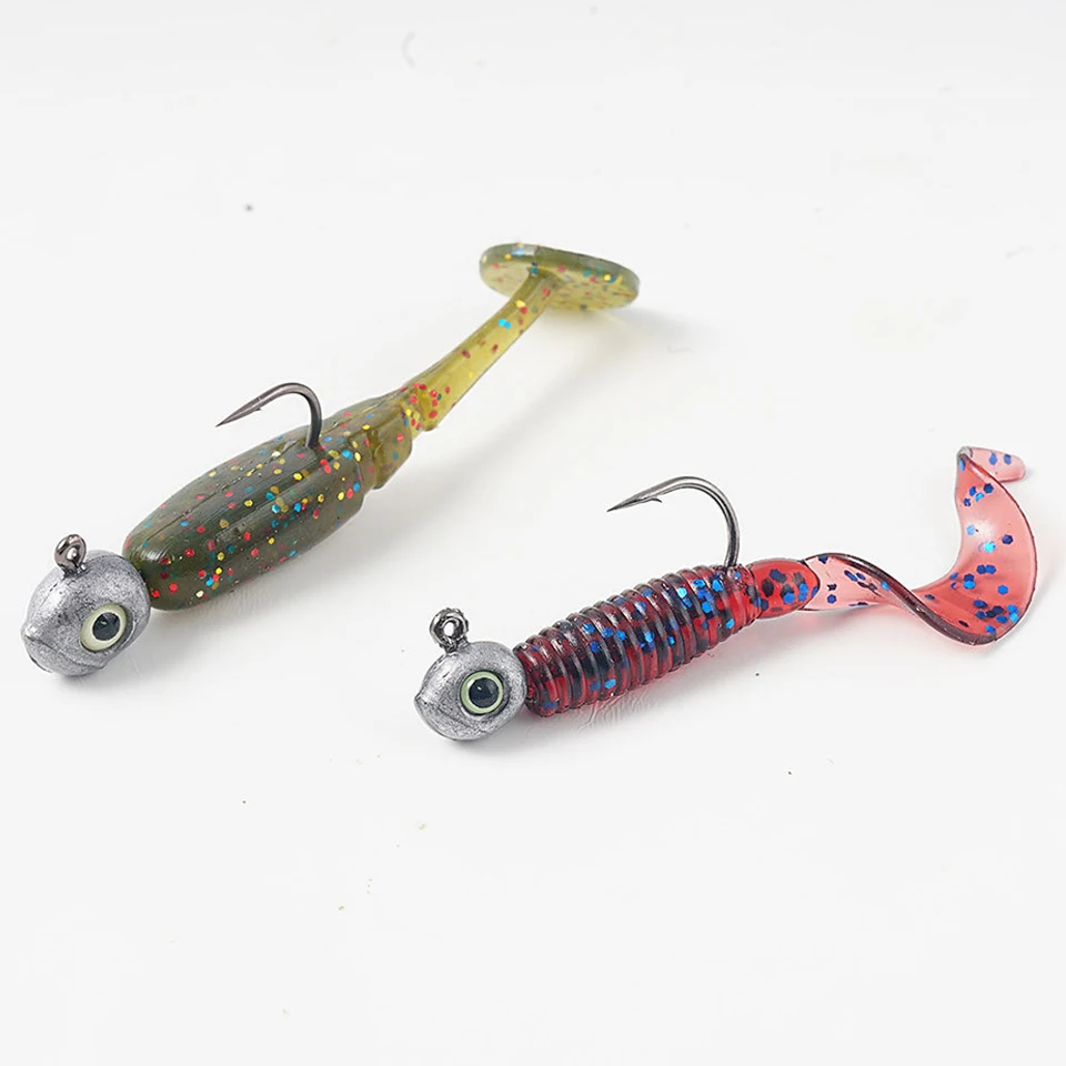 Anzuelo de pesca con cabeza de plantilla pequeña, Mini gancho de gusano suave con ojos, accesorios artificiales Isca, 5 piezas, 1,5g, 1,8g, 2g, 2,5g, 3g, 3,5g