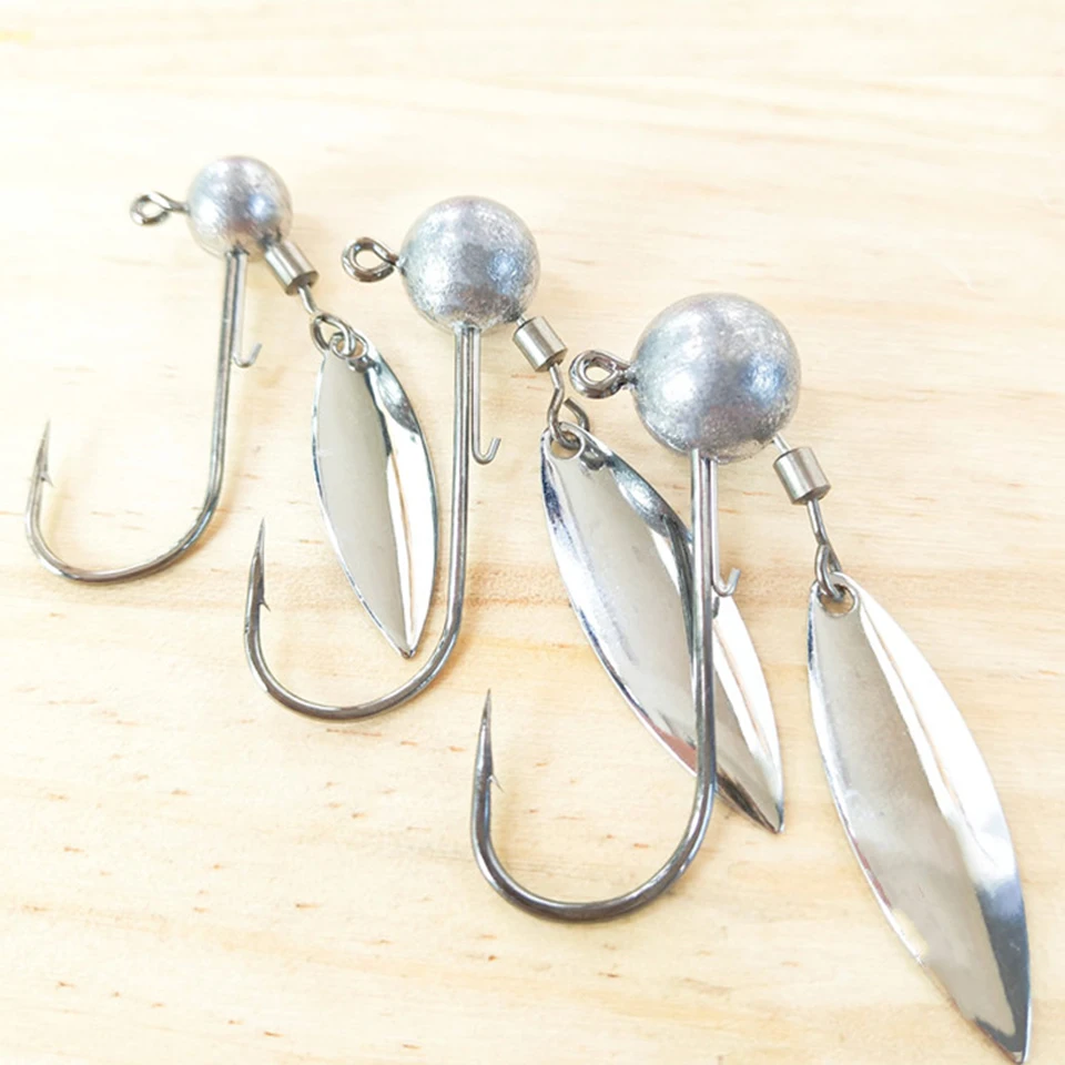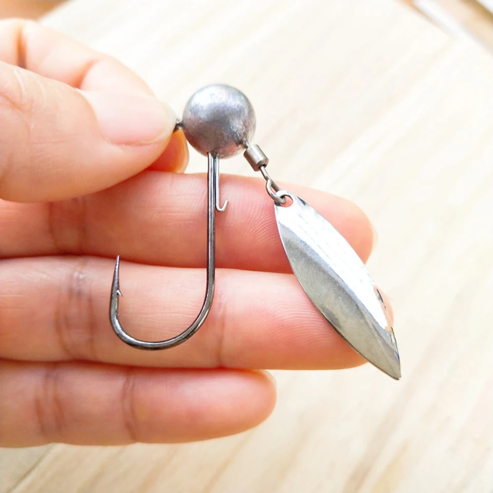 Anzuelo de pesca con cabeza plomada, anzuelo de pesca de 3,5g, 5g, 7g, 10g, bola redonda con hoja, anzuelo sin tejer para gusanos blandos, aparejos de pesca, 5 unidades por lote
