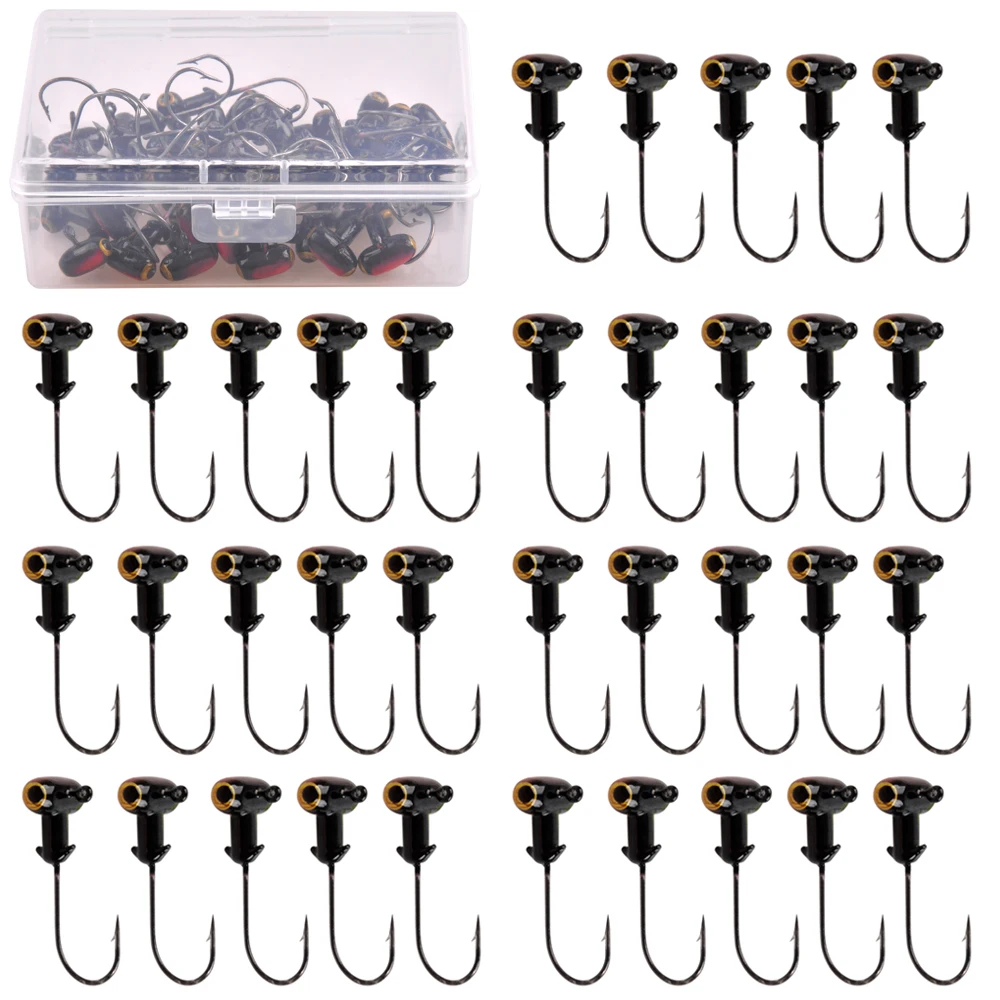 1.The lifelike jig head hook has 3D eyes,reflect light and add additional visual effects. A good fishing gift for anglers!