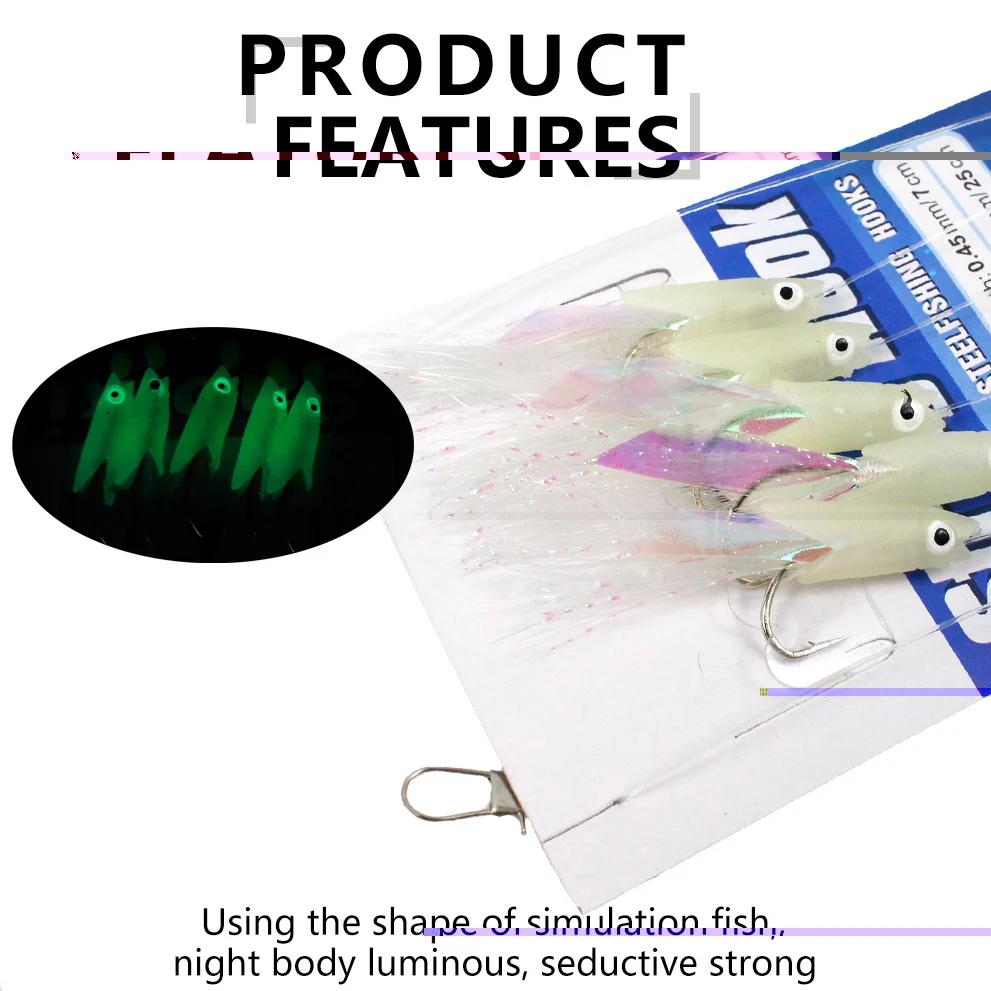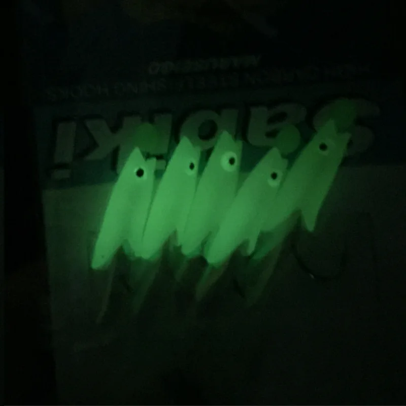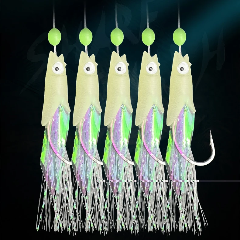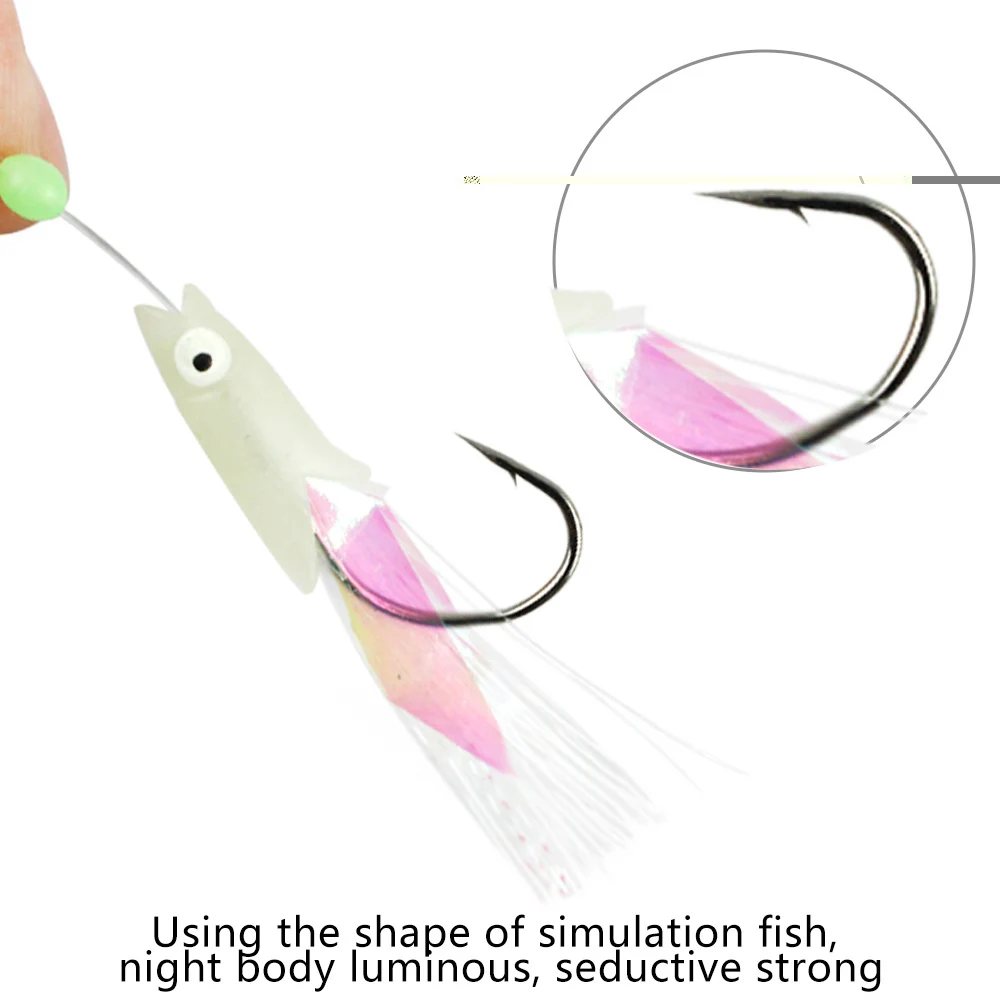 Anzuelo de pesca de camarón suave, luminoso señuelo exquisito de 50/25/15 piezas, cebo de pesca simulado, piel de pescado, gancho de púas, lubina, bacalao