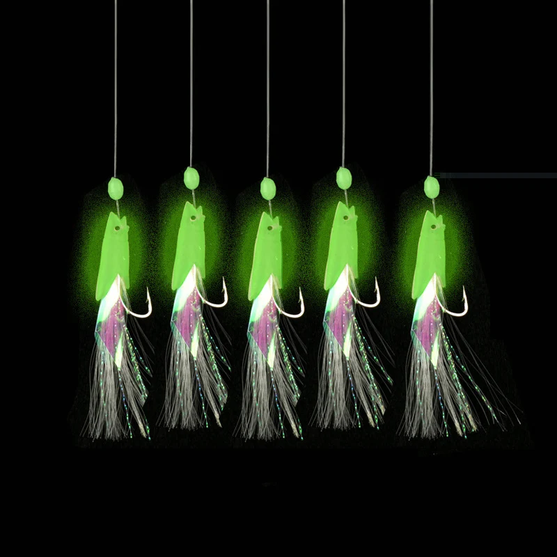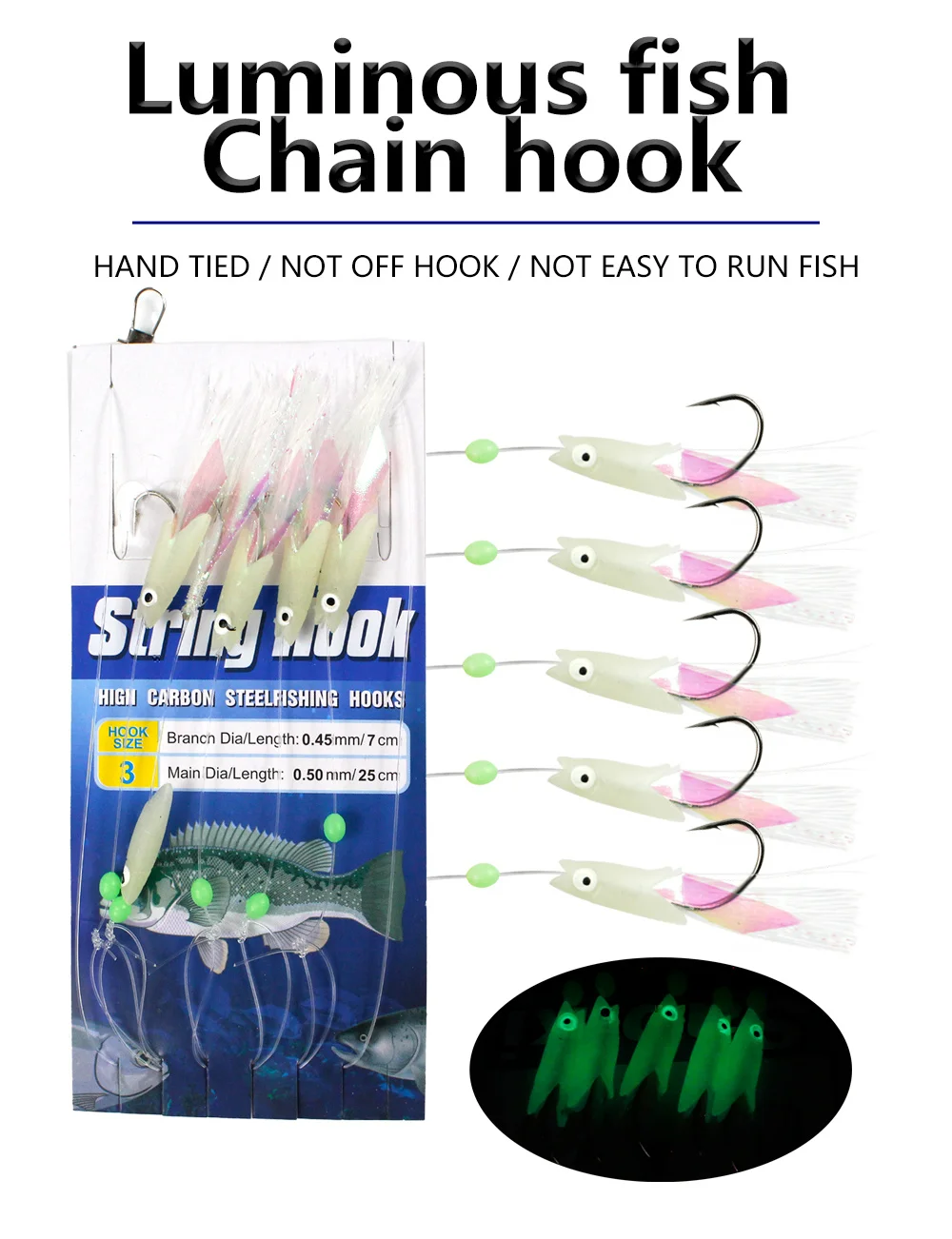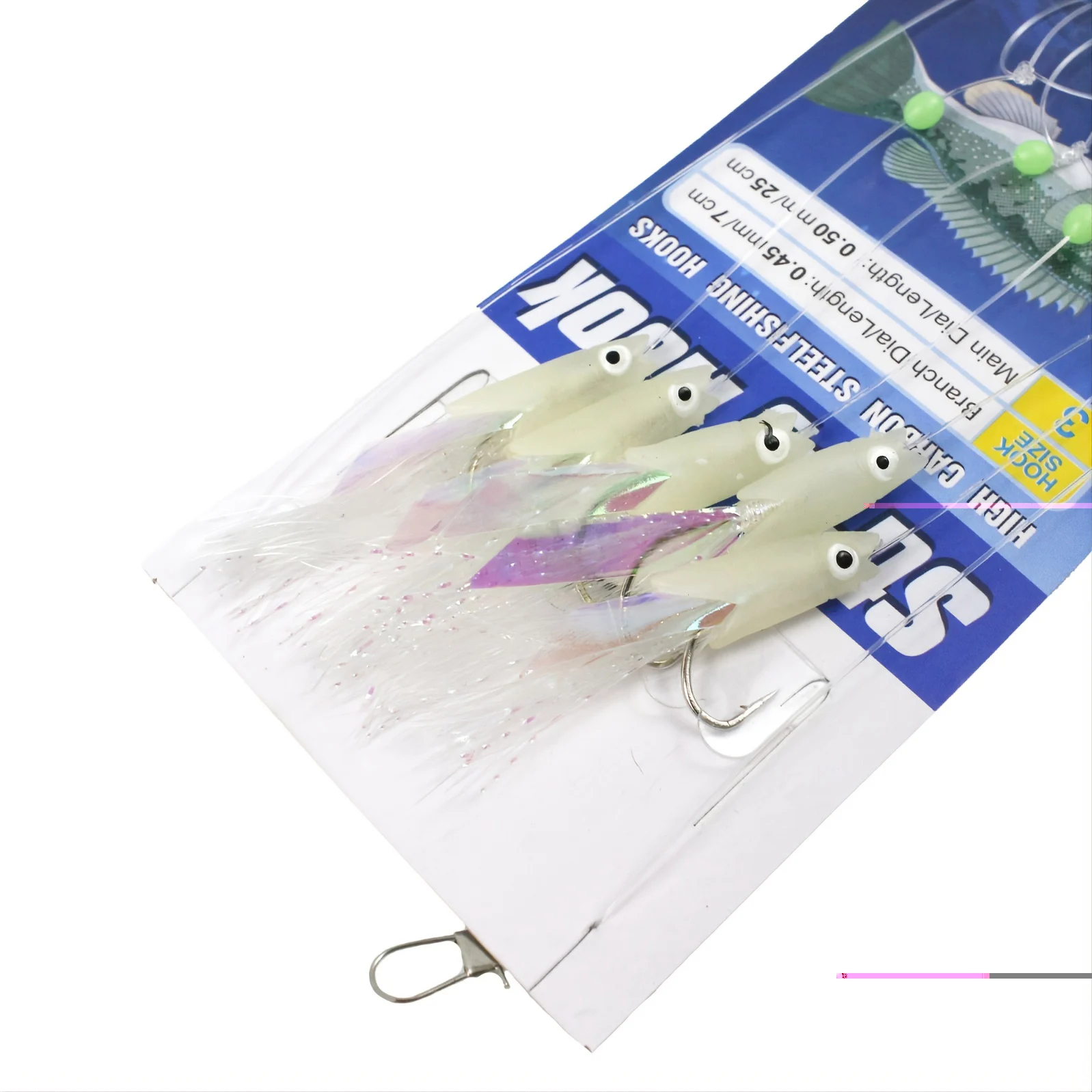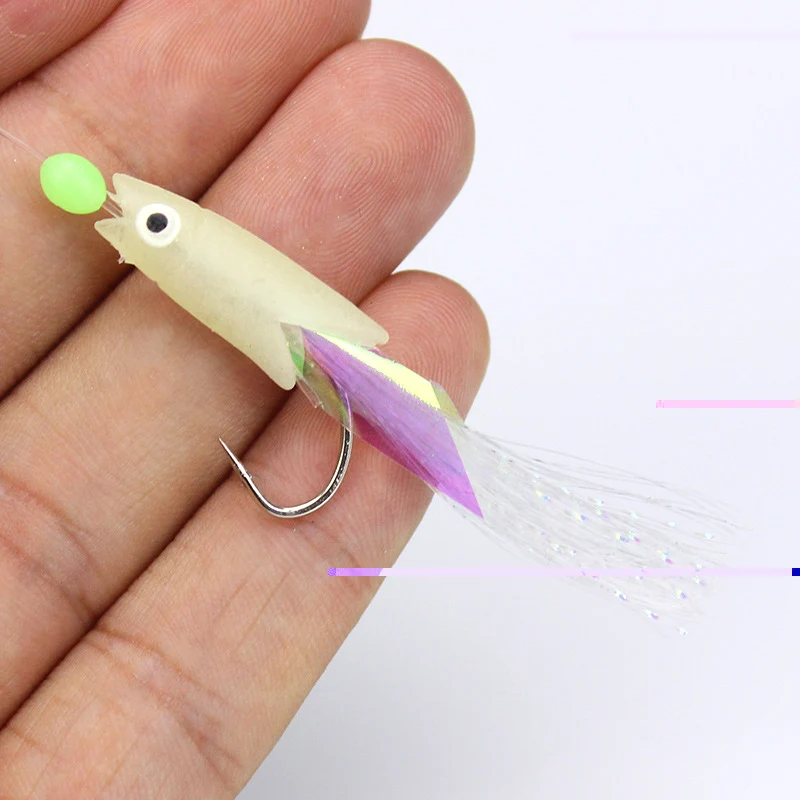 Anzuelo de pesca de camarón suave, luminoso señuelo exquisito de 50/25/15 piezas, cebo de pesca simulado, piel de pescado, gancho de púas, lubina, bacalao