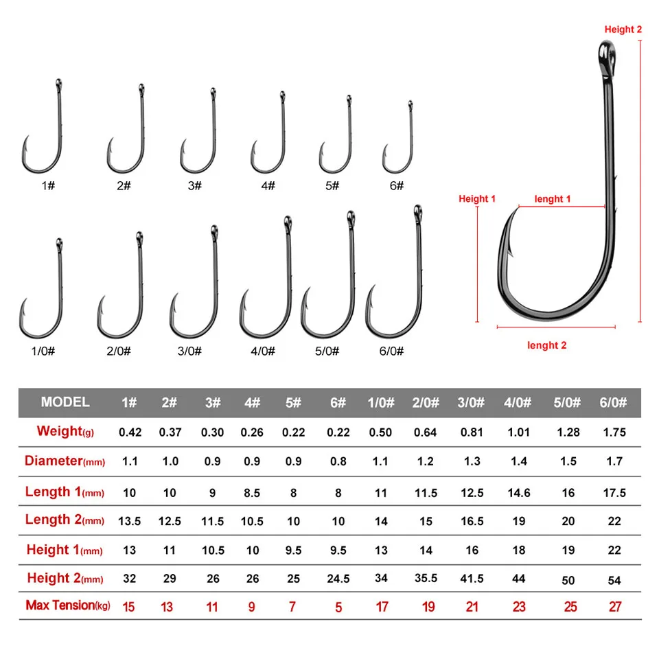 Tamaño: 6 #; 5 #; 4 #; 3 #; 2 #; 1 #; 1/0 #; 2/0 #; 3/0 #