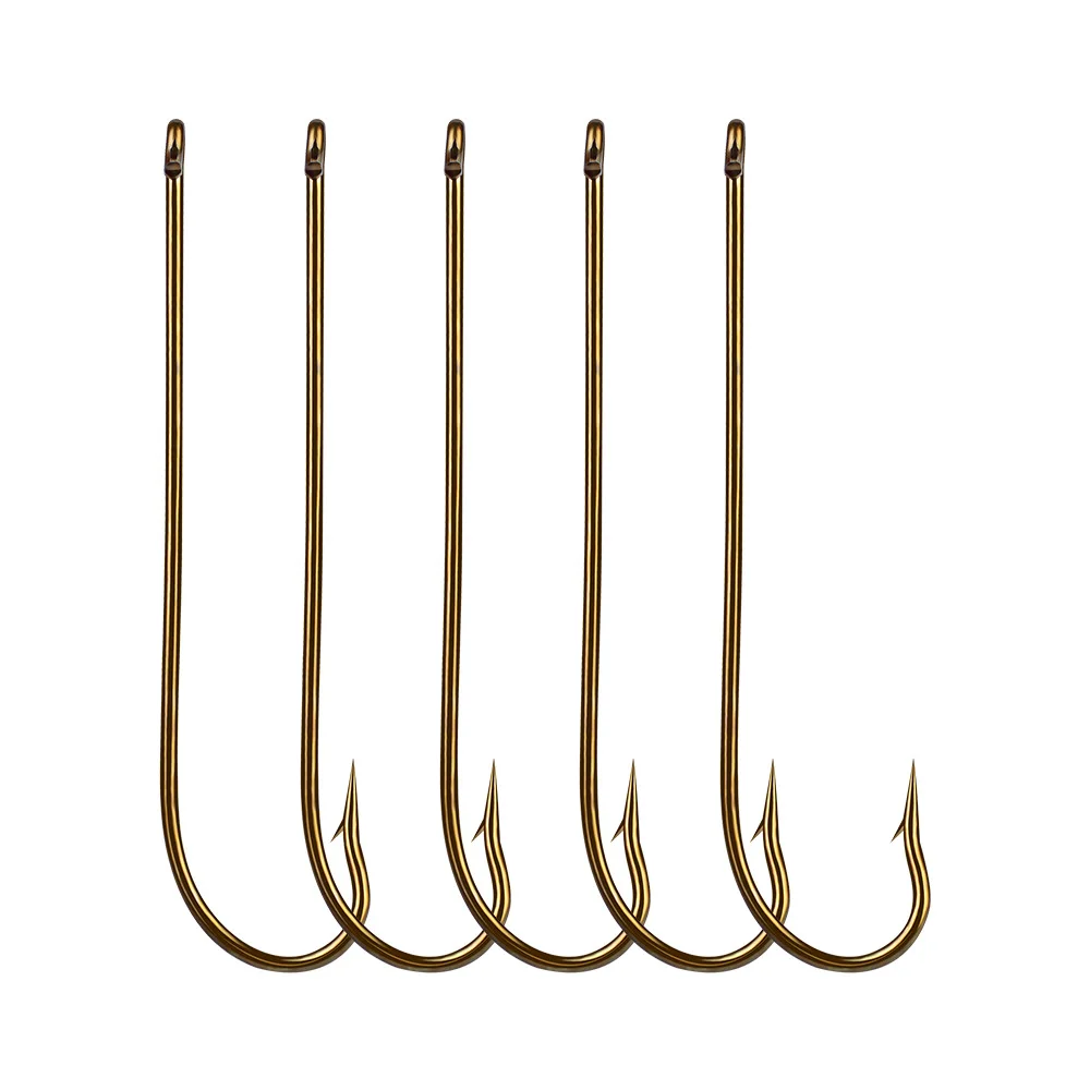 Anzuelo de pesca de caña larga, anzuelos de pesca de carpa cruciana de acero de alto carbono, púas afiladas, Offset, anzuelo de cebo estrecho, 100 piezas