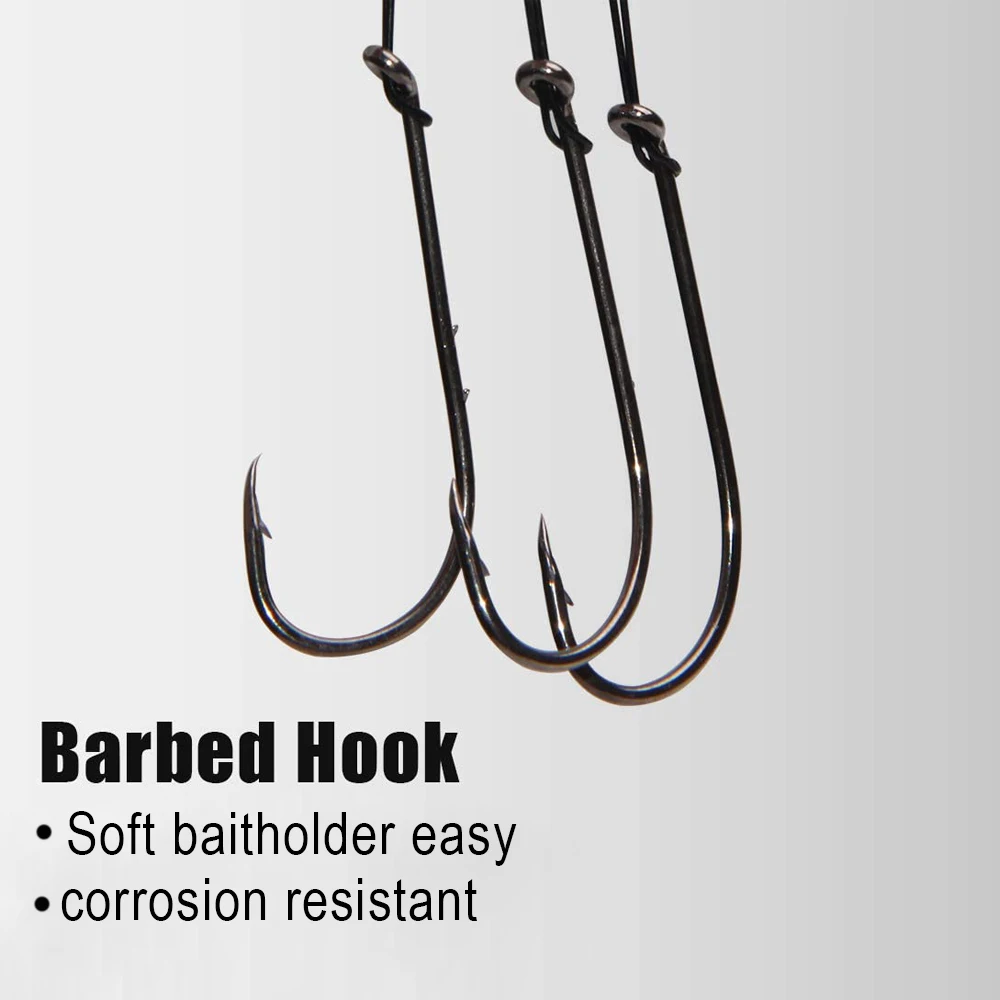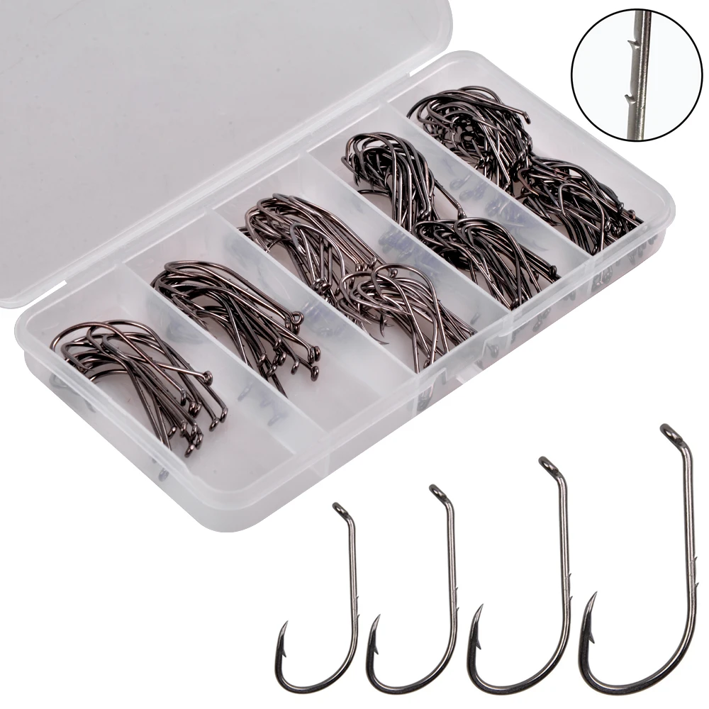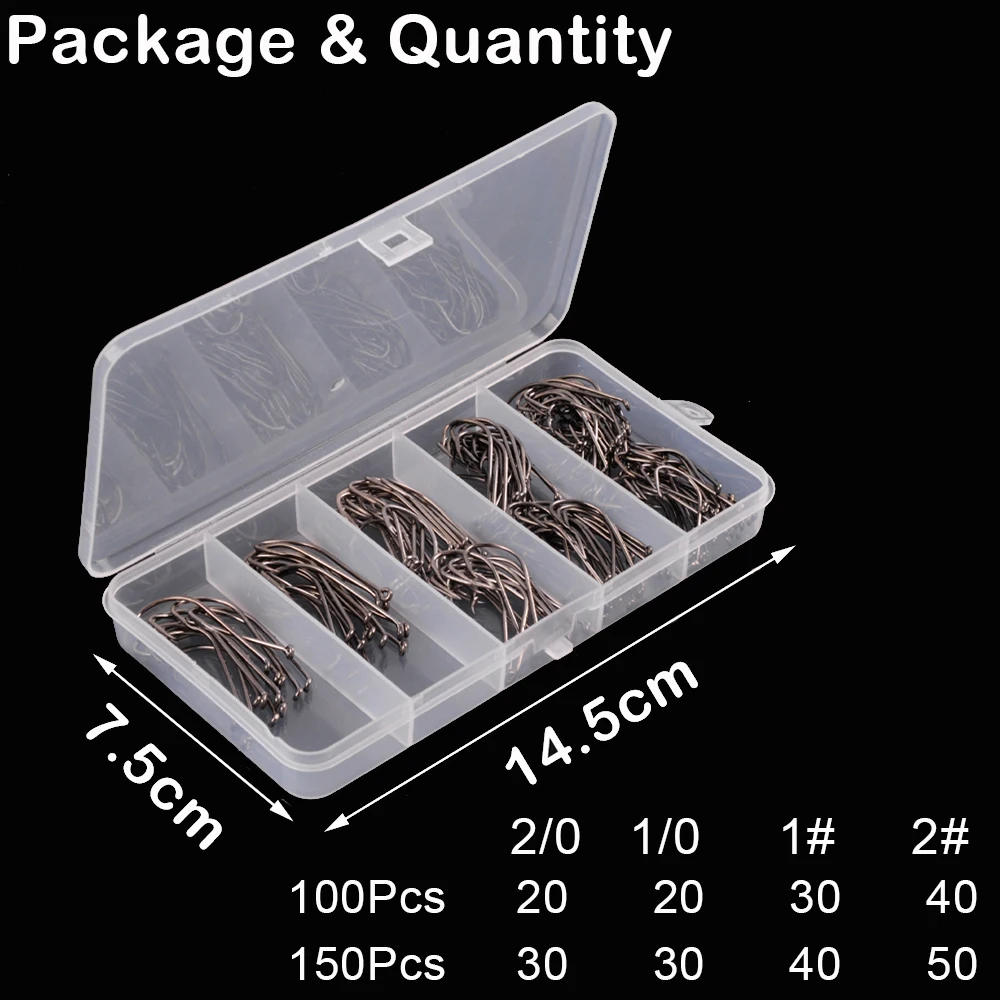 Anzuelo de pesca de caña larga de 100/150 piezas, cebo Jig de gusano blando baithod, anzuelos de púas de agua salada, anzuelos Offset de acero de alto carbono