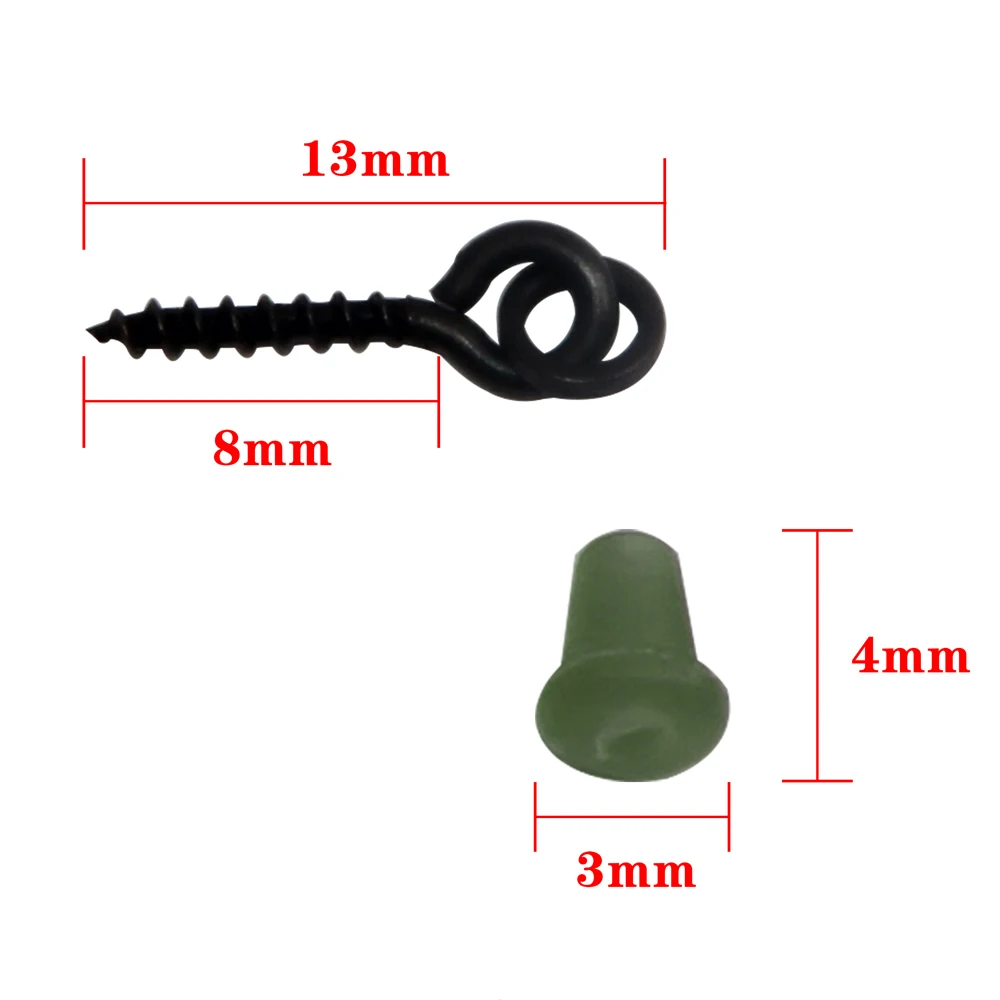 Los topes de gancho se utilizan para mantener los microeslabones giratorios, los anillos de aparejo y los tornillos de cebo en los ganchos