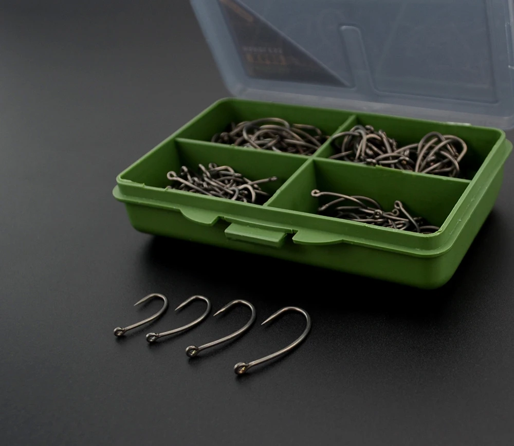Anzuelos de pesca de carpa de 200, anzuelos sin púas con caja X600