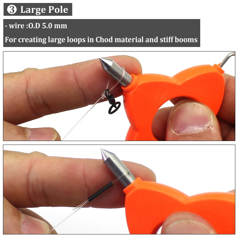 3 "poste" (grande, cable: O.D 5,0mm): para crear bucles grandes en material Chod y telares rígidos