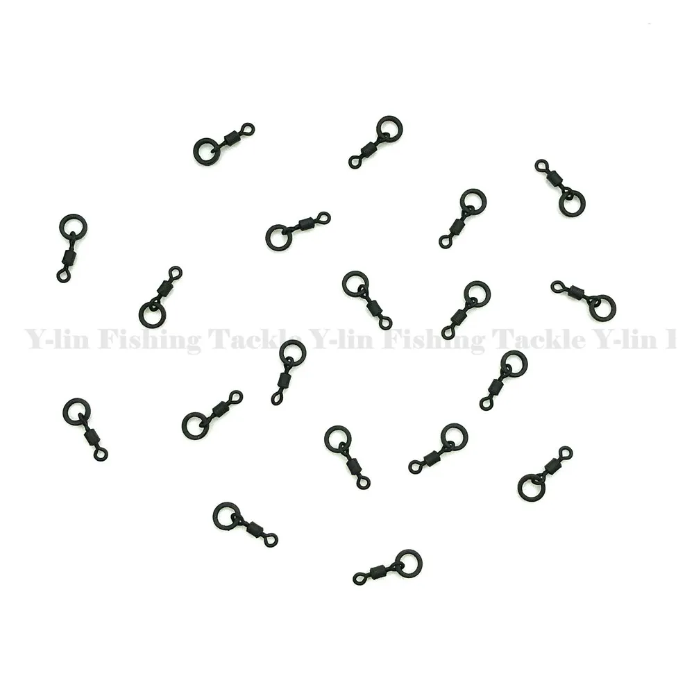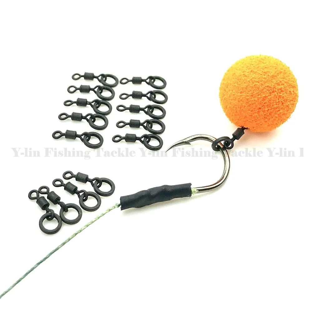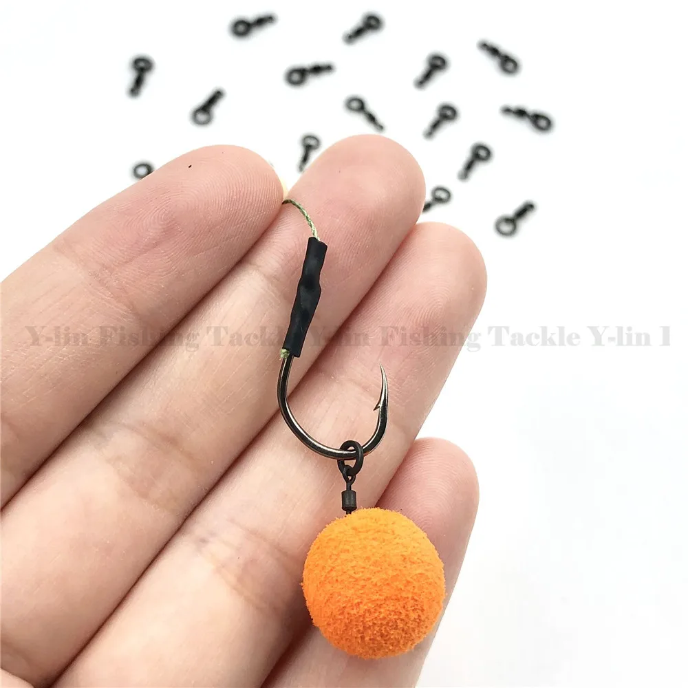 Aparejos de pesca de carpa con microanzuelo giratorio. Microgancho giratorio de tamaño 20 del Reino Unido con anillo flexible. Perfecto para montar cebos en el anzuelo sin necesidad de un pelo. Gran presentación natural. Color: negro mate Material: acero + cobre