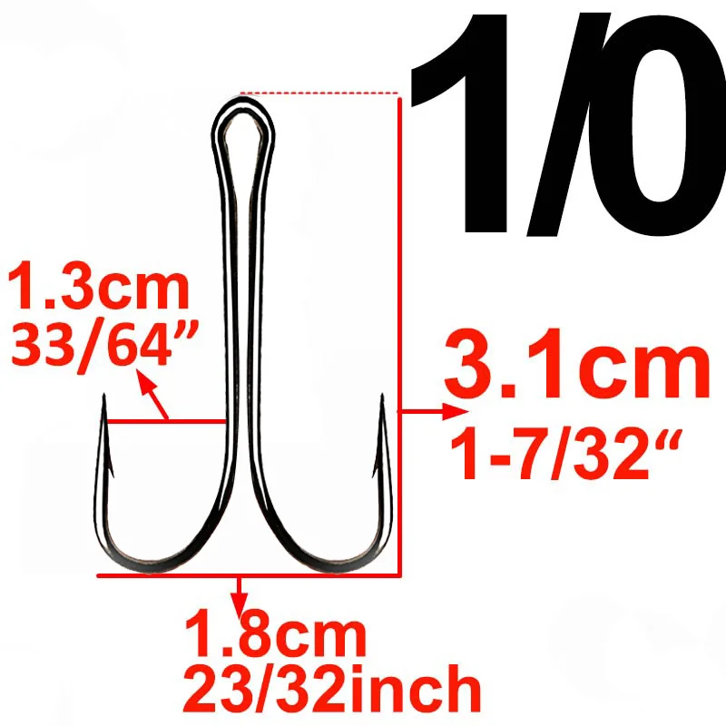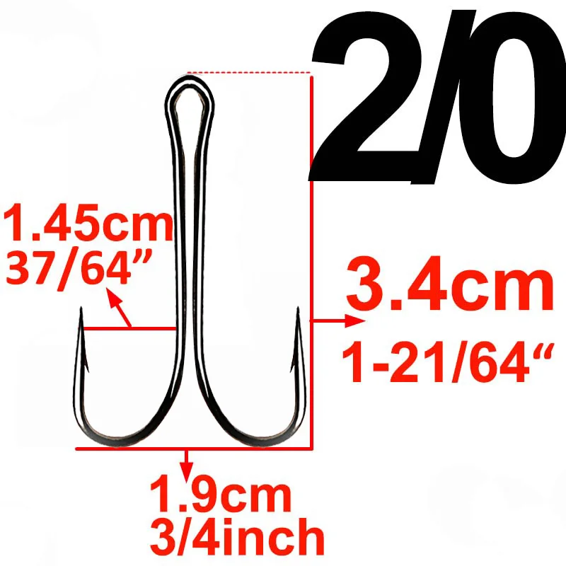 Anzuelo de pesca doble, herramienta para pescar con mosca, anzuelo doble para señuelo de lubina, tamaño 1, 2, 4, 6, 8, 1/0, 2/0, 3/0, 20 piezas o 50 unidades