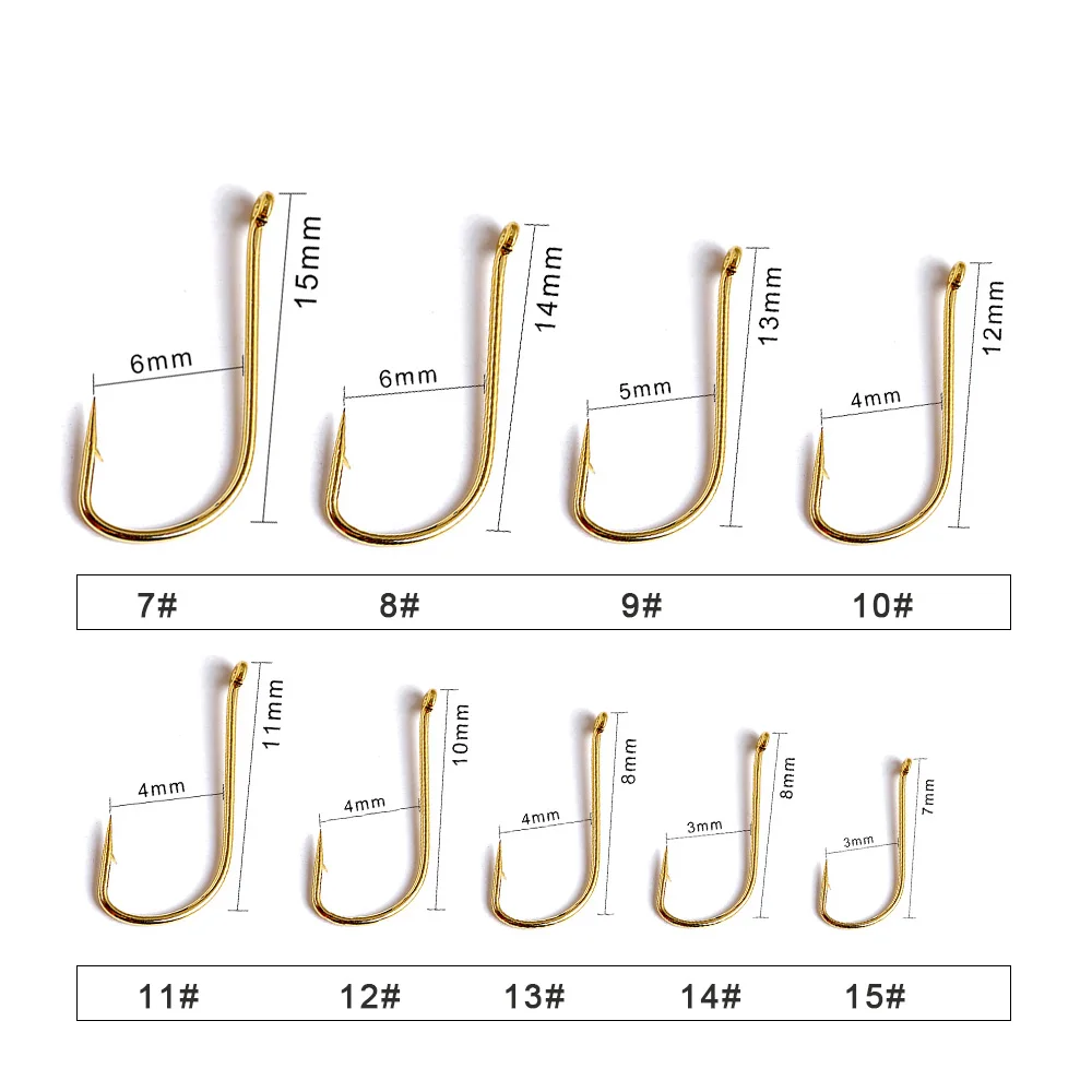 Los anzuelos son muy buenos, pero también muy pequeños en tamaño 7, también adecuados para truchas. Compré los pequeños para cebo de peces.