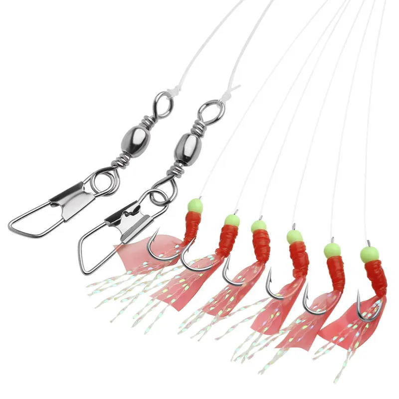 Anzuelo de pesca giratorio de acero inoxidable, anzuelo de cebo, combinación única, cuerda de alto carbono, 6 anzuelos, señuelo, caliente